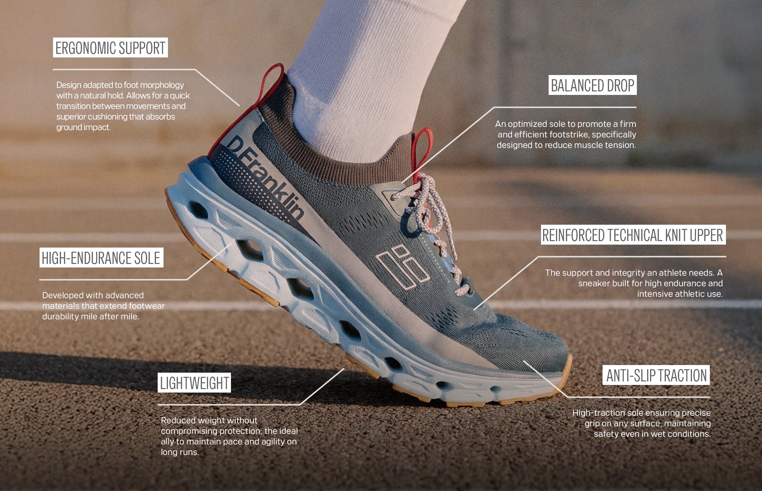 The Aero Dual White / Orange by D.Franklin are designed for running and daily training, with a regular fit and lace-up closure for a secure hold. The platform sole delivers a stable lift, backed by the Biomechanical Run Comfort Validation.