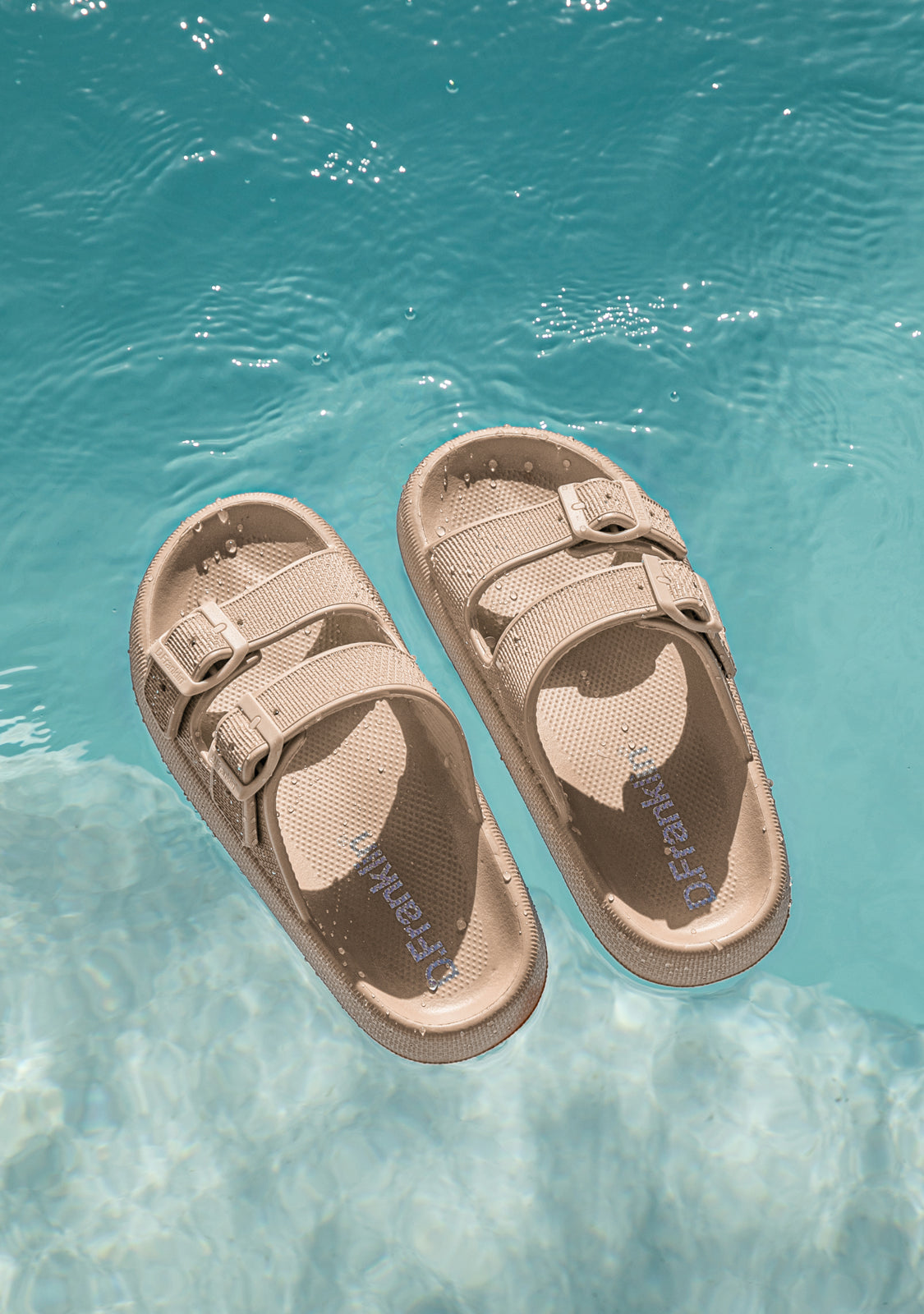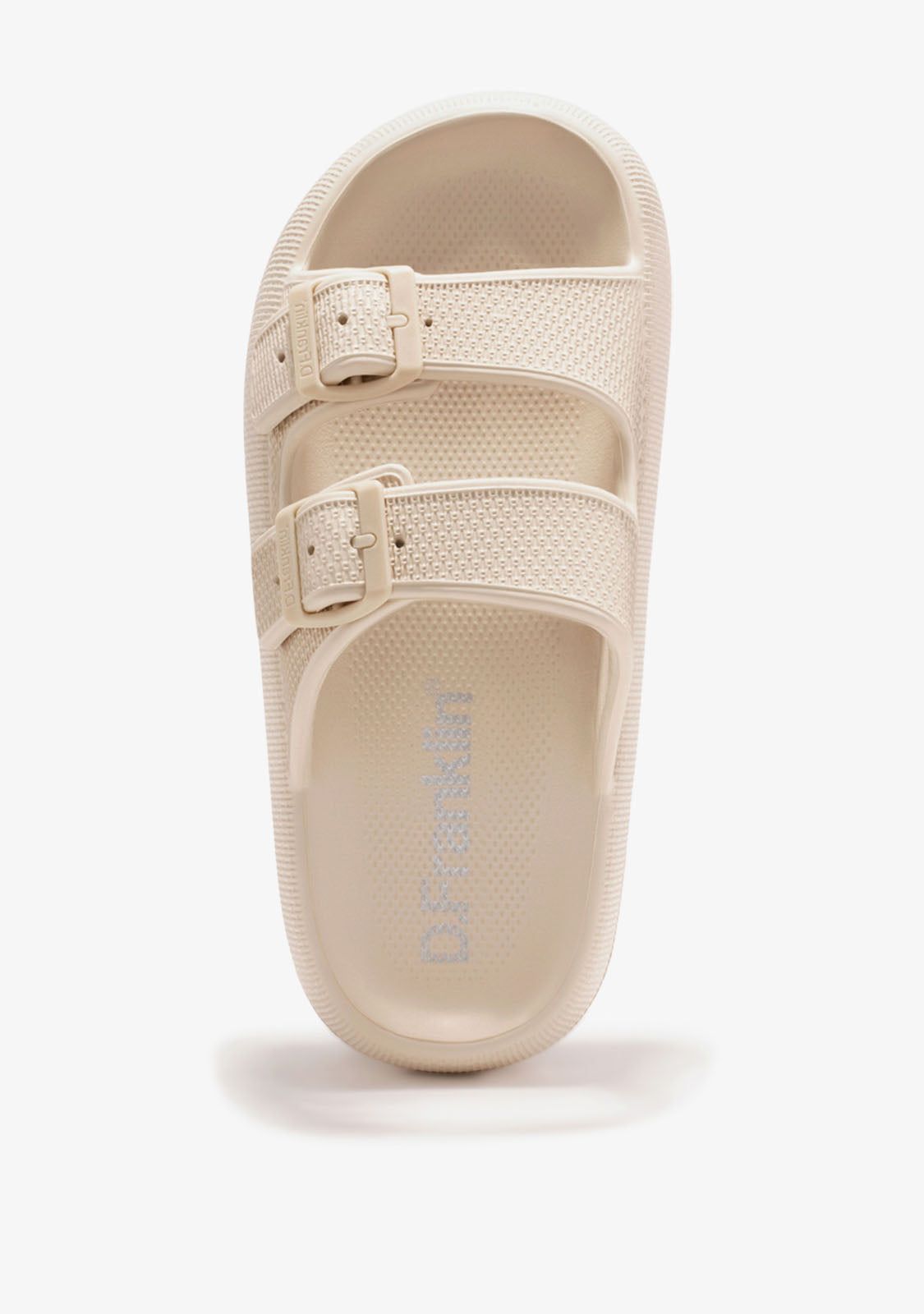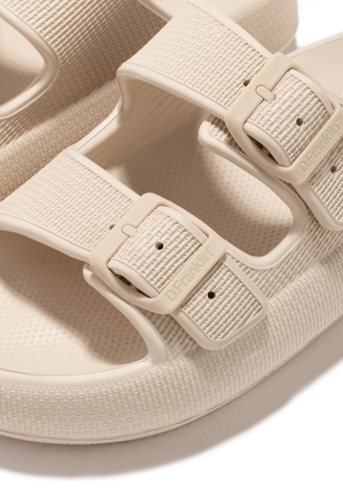 The white sand of Bondi Beach, Australia is represented in this sandal. Made with EVA for a lightweight feel. Designed with a rounded silhouette and double buckle closure in beige. D.Franklin logo on the sole. Bloomer Bio sandals run slightly small. We recommend choosing one size larger than your usual size.