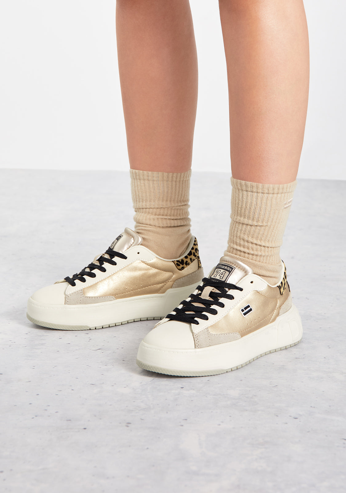 The Court D.Franklin model is made with a gold tone and animal print heel. They have a contrasting grey sole with the logo embossed on both the heel and the sole. They also have the flag embroidered on the side. With a 4 cm height and a phylon sole for lightweight cushioning. The anatomical footbed is also removable.