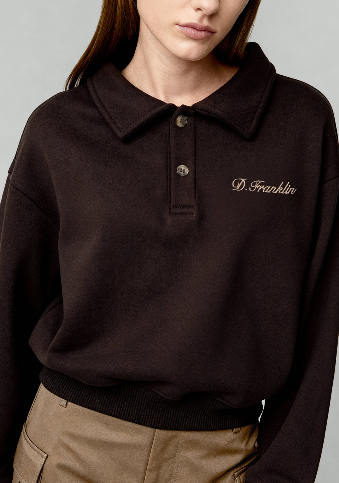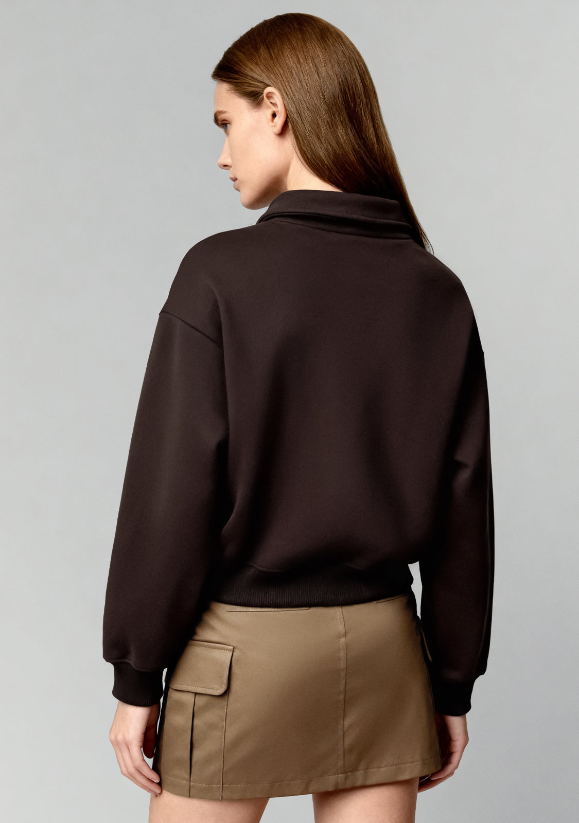 Cropped Polo Sweatshirt Brown is a women's sweatshirt that reimagines a classic cut with a modern twist. The cropped length and polo collar make it a standout piece that’s easy to dress up or down.