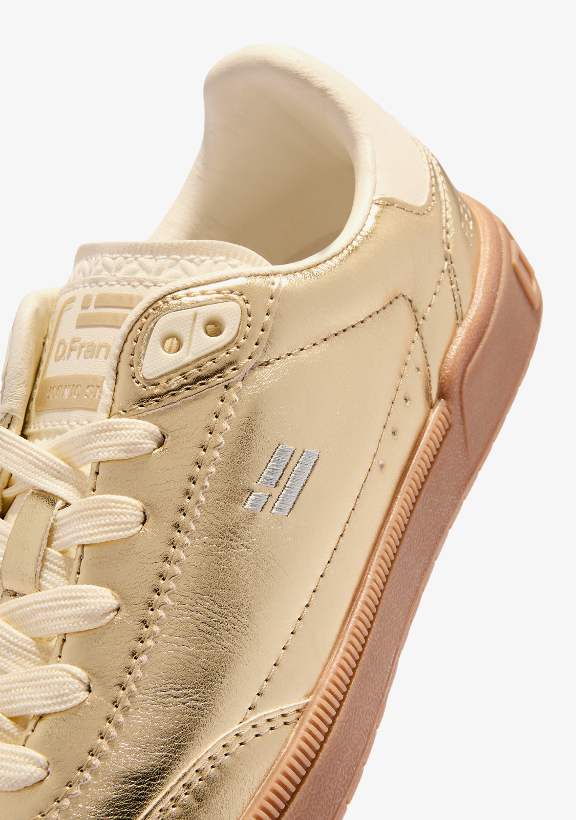 - Upper in 100% synthetic material with metallic gold finish.