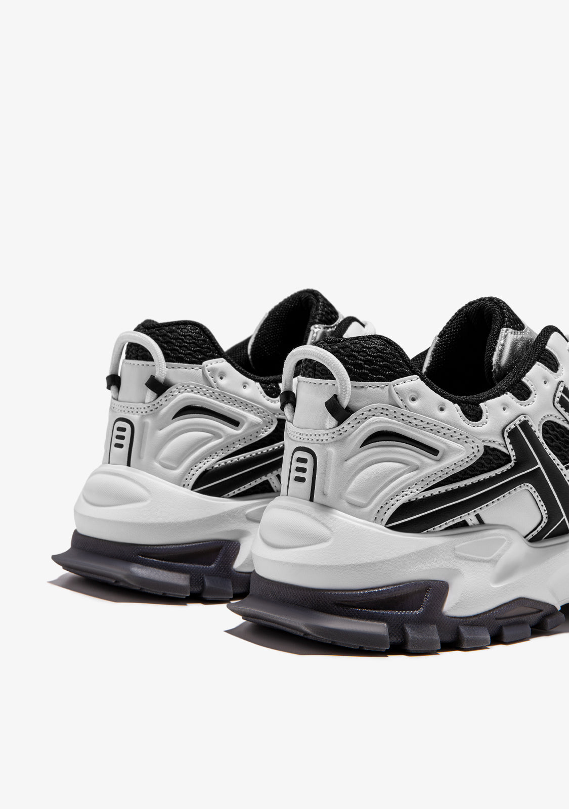 Unser 347 hat das ultimative chunky Wesen. Seine schweren Nylon-Gitter sind mit verschiedenen Oberflächen und Schattierungen von Schwarz und Weiß kombiniert. Es zeigt unser Emblem auf der Vorderseite. Und die charakteristische TR-Sohle mit doppelter Dichte kontrastiert mit der Farbe des Designs für zusätzlichen Komfort.