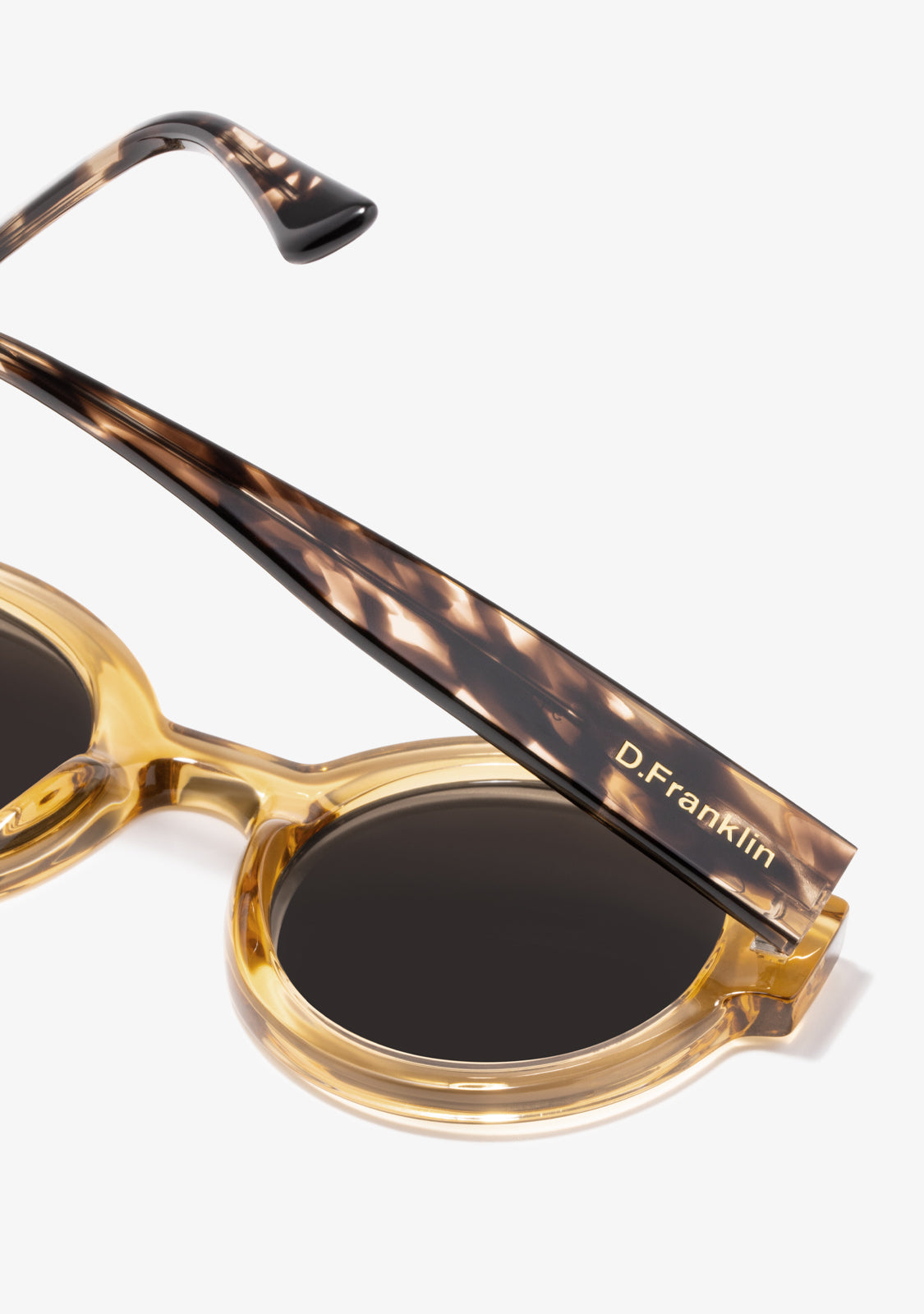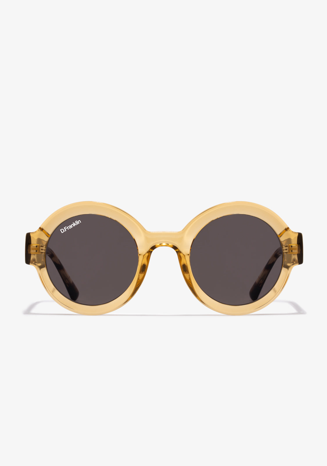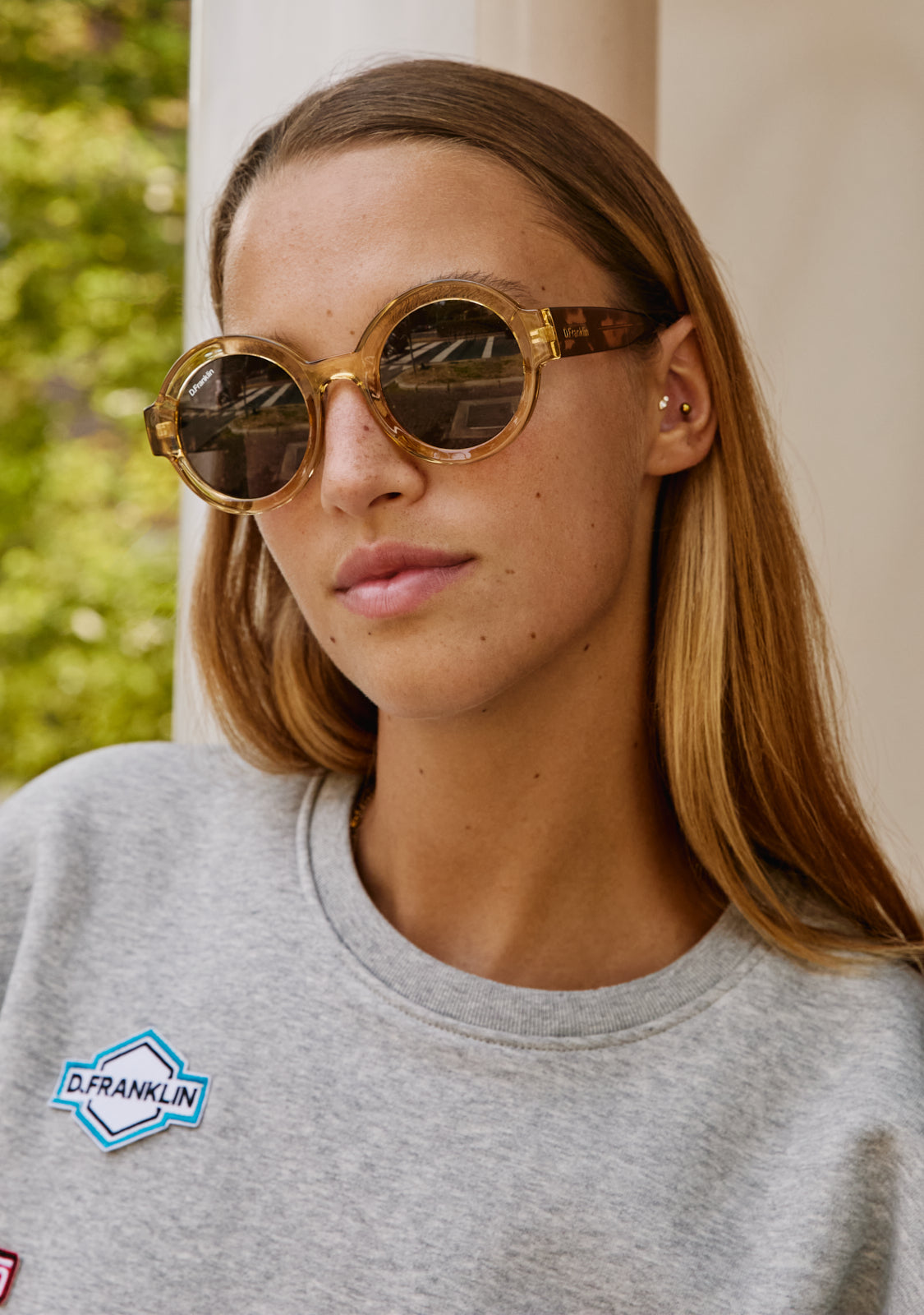 Runde Sonnenbrillen mit einem transparenten Finish in Brauntönen. Ein markantes Stück für Ihre gewagtesten Outfits.