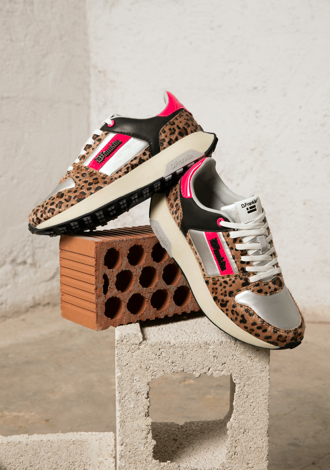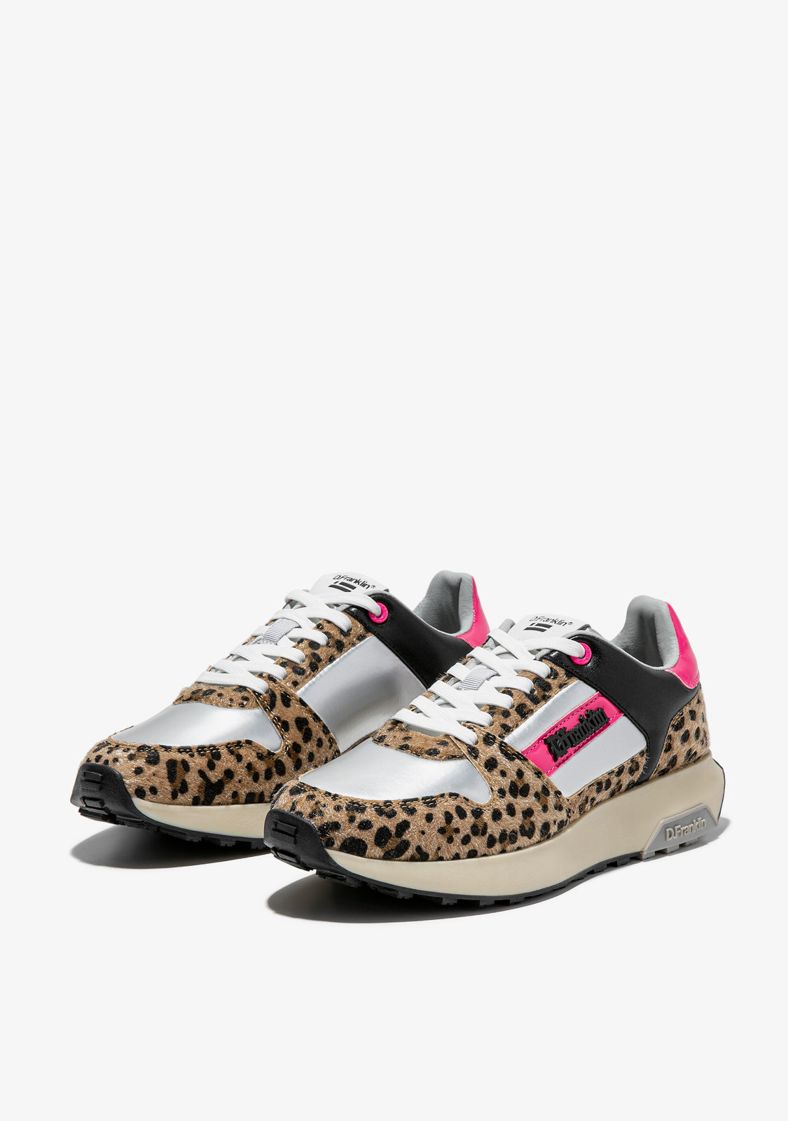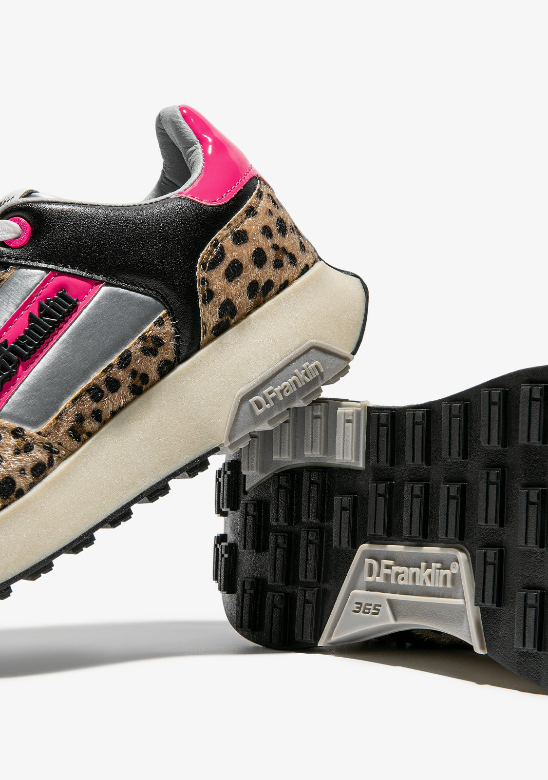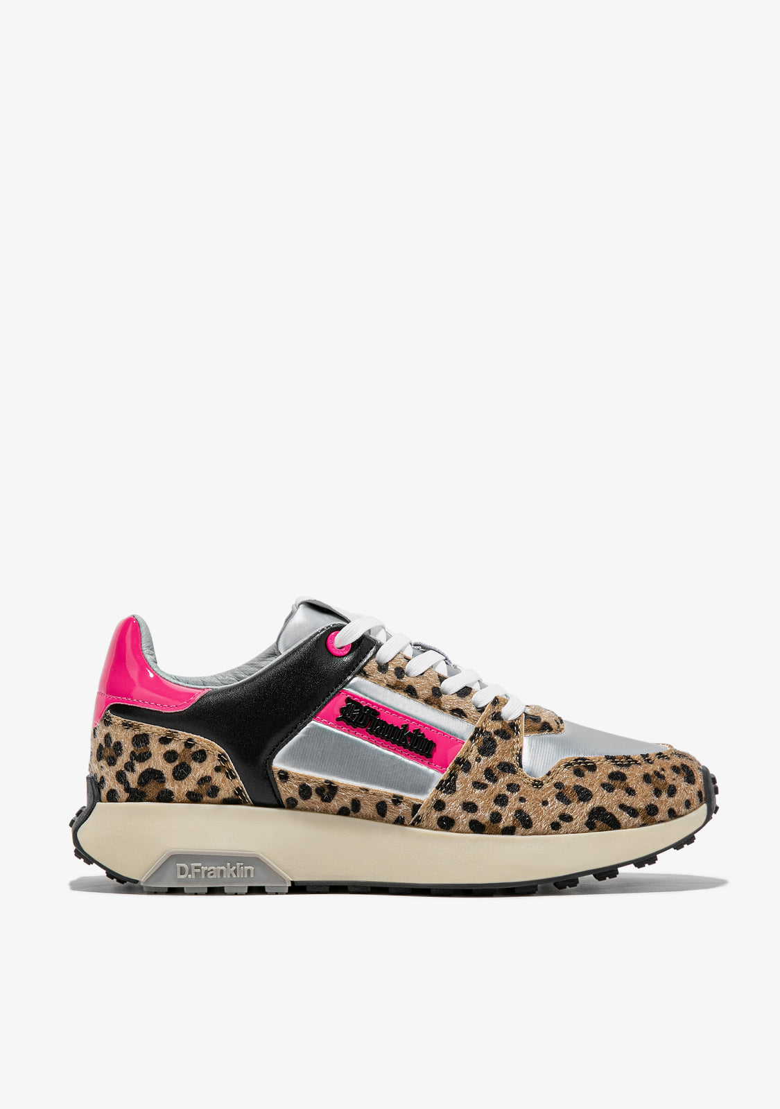 Dieses Modell vereint ein Tiermuster mit elektrischen Fuchsia-Tönen, die seine Einzigartigkeit hervorheben. Es hat ein D.Franklin-Logo an der Seite und Baumwollschnürsenkel für einen perfekten Sitz. Darüber hinaus verfügt es über eine Sohle mit zwei Dichten. Die erste besteht aus recycelten Materialien für einen bequemen und leichten Gang, und die zweite ist geprägt, um Grip zu bieten.