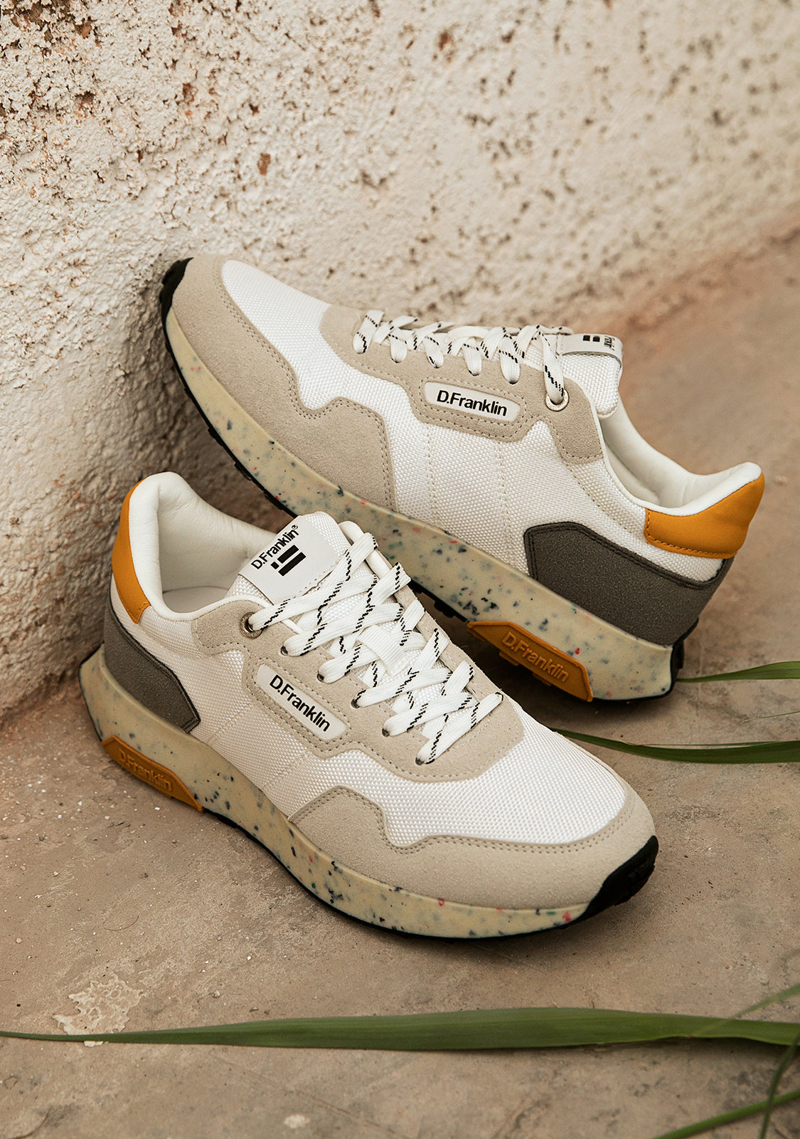 Sneaker in neutralen Tönen D.Franklin, entworfen für die urbane Routine. Mit einer aktualisierten Silhouette, die geschaffen wurde, um die Straßen zu gehen, die uns inspirieren und mit dem Alltag zu brechen.