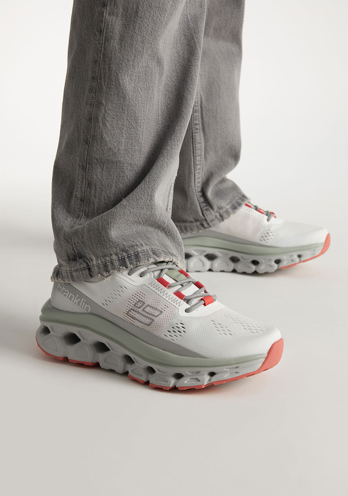 Der Aero White / Fuchsia von D.Franklin kombiniert das saubere Aussehen von weiß mit dem lebhaften Pop von fuchsia und schafft einen Sneaker, der auffällt. Perfekt für diejenigen, die Energie und Stil in ihrem Schuhwerk wollen.