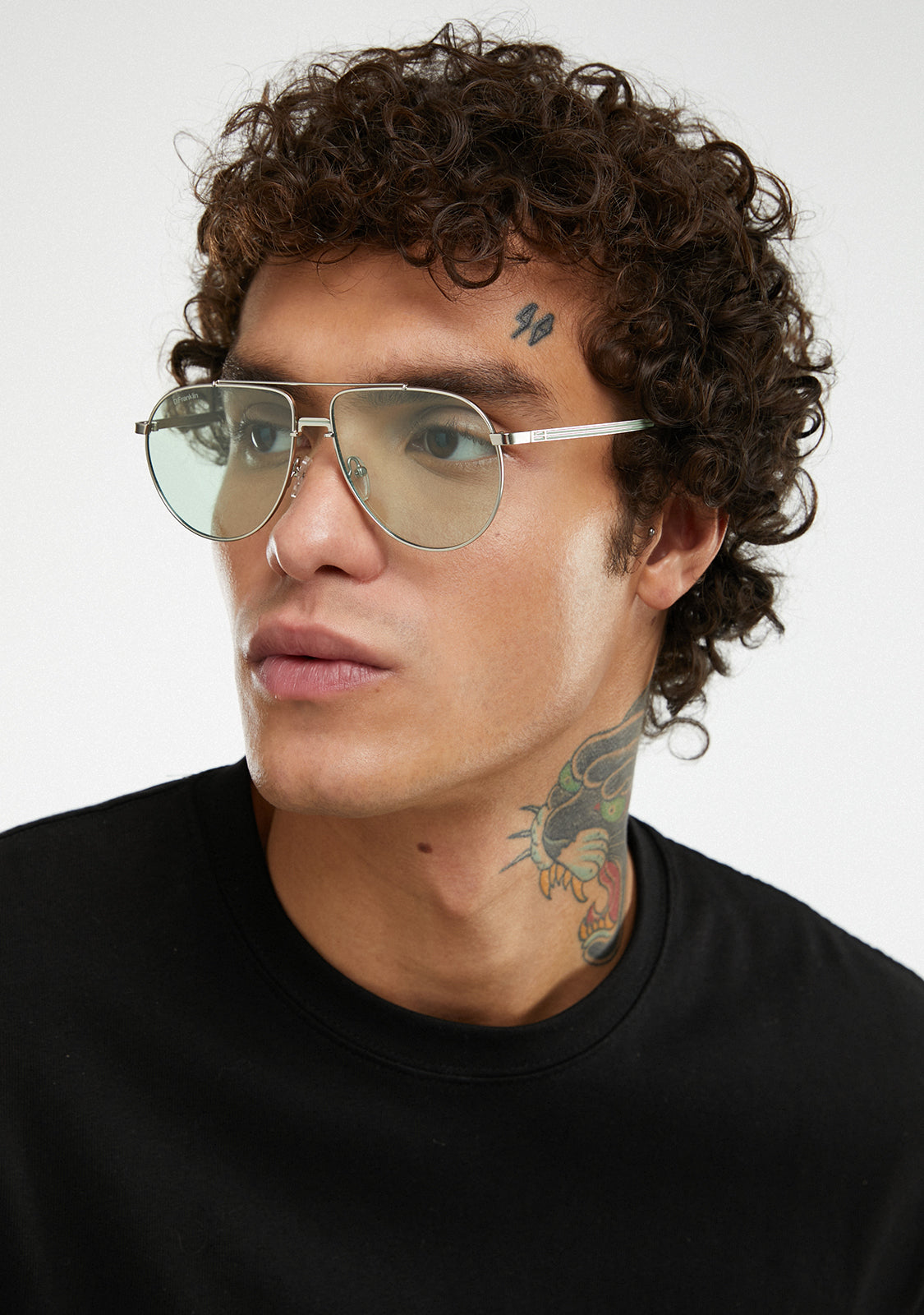 Rauchige Gläser, die in einem hellgrünen Farbton getönt sind, und ein metallischer Silberrahmen verstärken seine unverwechselbare Ästhetik. Dieses Modell verfügt über unser Emblem auf dem rechten Glas und das Logo an der Seite der Bügel. Es hat auch einen 140 mm breiten Frontrahmen und eine Glasbreite von 60 mm, die den meisten Gesichtern passt. Die Bügel sind 140 mm lang.Darüber hinaus verfügt dieses Design über ein Rim Lock-System, das es ermöglicht, die Gläser durch Korrektionsgläser zu ersetzen. UV-Schutz UV 400 kat. 0.