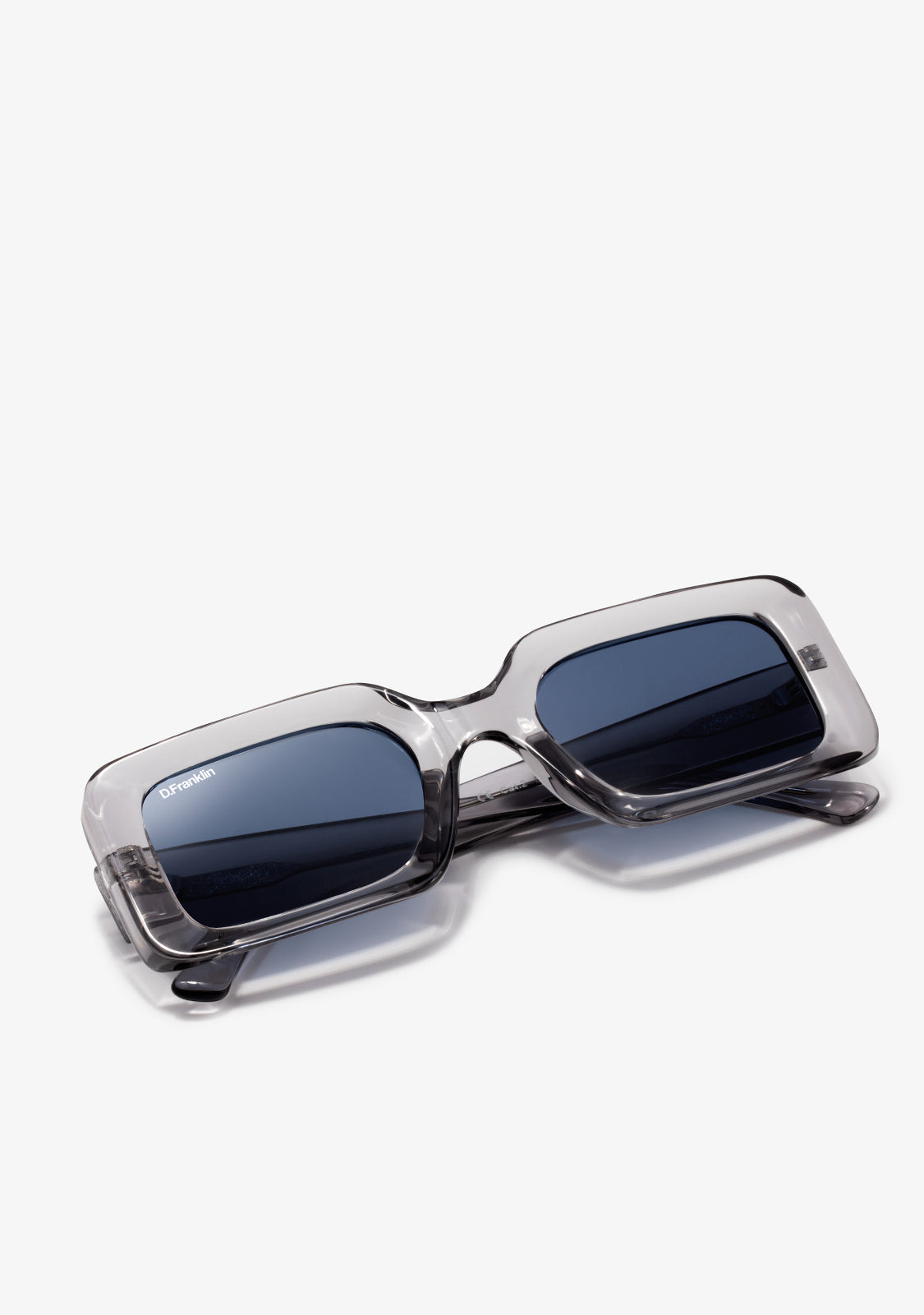 Sonnenbrillen mit rechteckigen Rahmen und transparenter Oberfläche. Inspiriert von den Landschaften der Orte, die wir bereisen möchten.