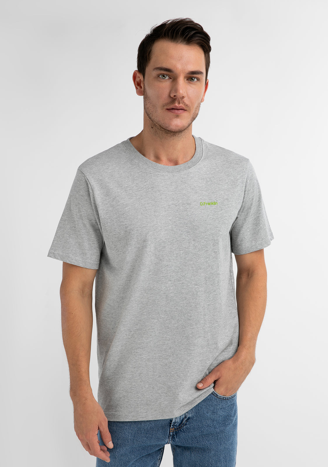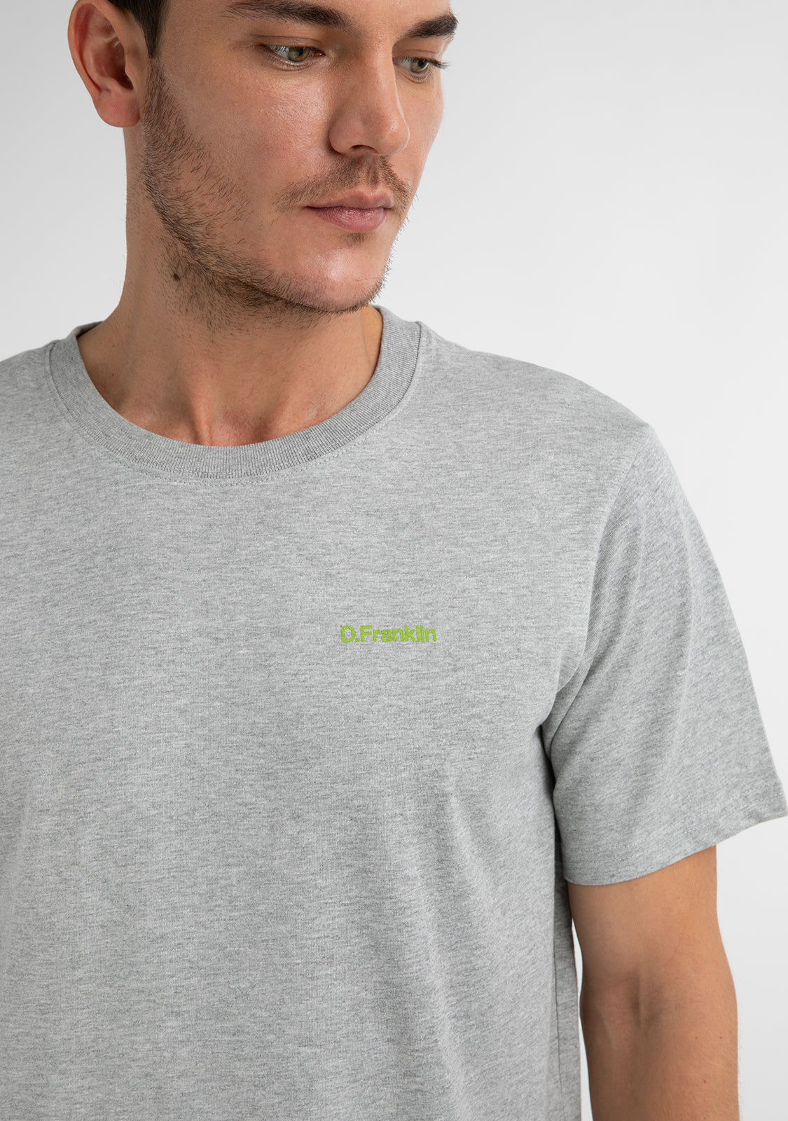 Die Essenz des minimalistischen Stils, reflektiert in einem grauen T-Shirt. Vielseitigkeit, Eleganz und Funktionalität übernehmen dieses ikonische Modell mit einer D.Franklin Seele.