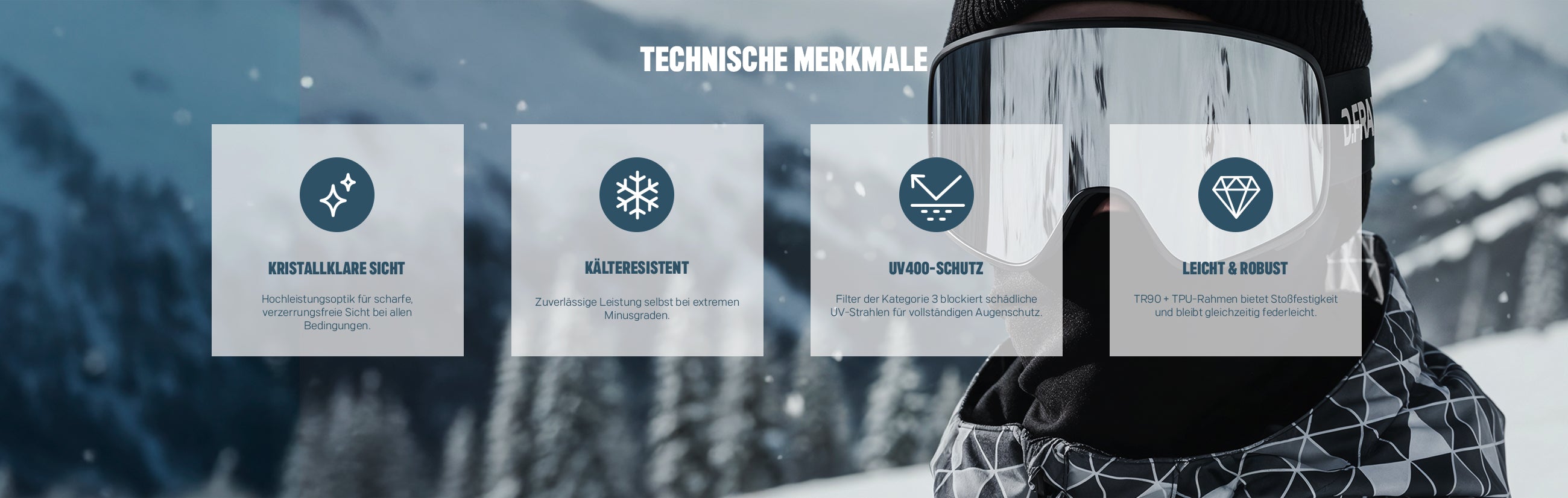 Blizzard Schneebrillen, unser Wintersturm... Gleite mit einer neuen Sicht die Pisten hinunter. Ein Zubehör, das für SCHNEE entworfen wurde. In Großbuchstaben.