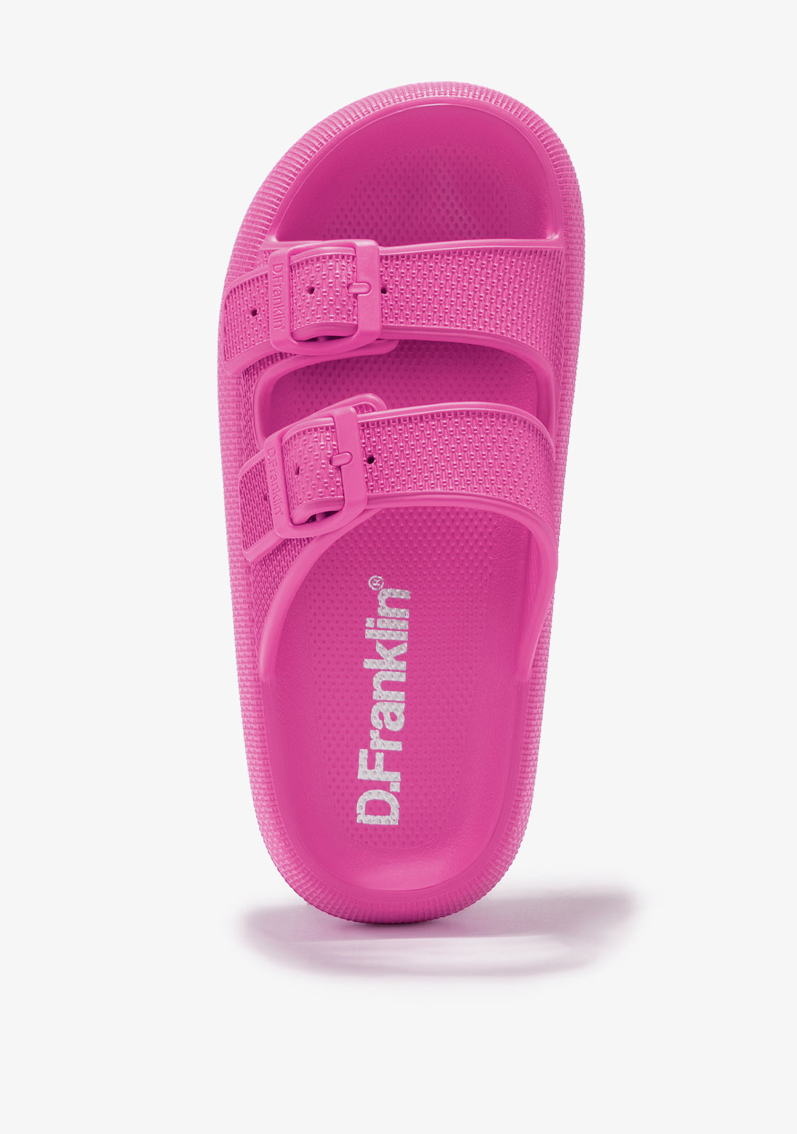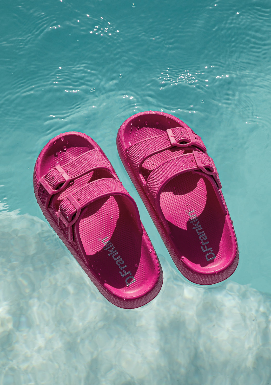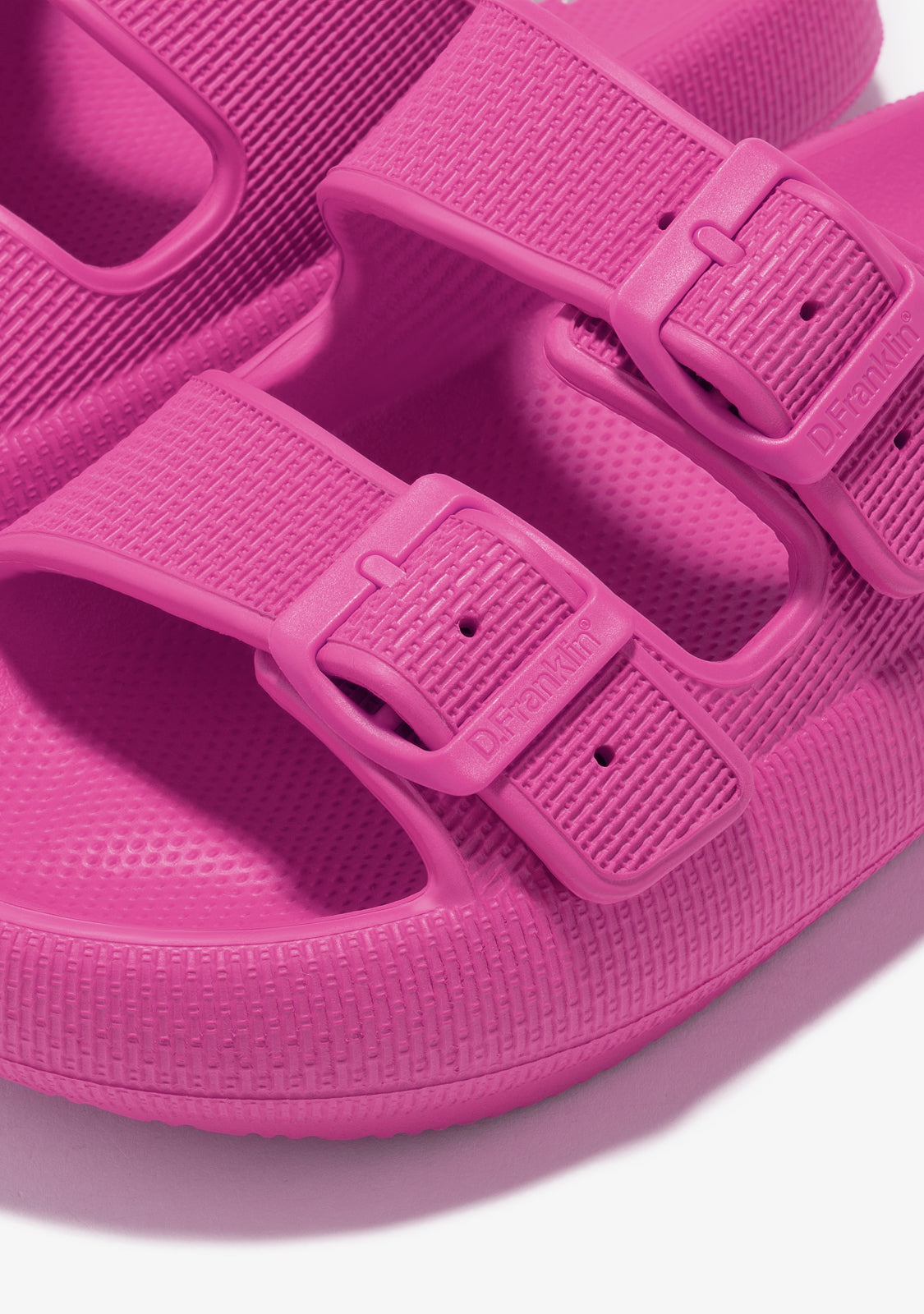Die in den Tiefen von Paradise Island, Malediven, entdeckten Korallen verleihen diesem Sandalen Farbe. Hergestellt aus EVA für ein leichtes Tragegefühl. Entworfen mit einer abgerundeten Silhouette und doppeltem Schnallenverschluss in Korallenfarbe. D.Franklin-Logo auf der Sohle. Bloomer Bio Sandalen fallen etwas klein aus. Wir empfehlen, eine Größe größer als Ihre übliche Größe zu wählen.