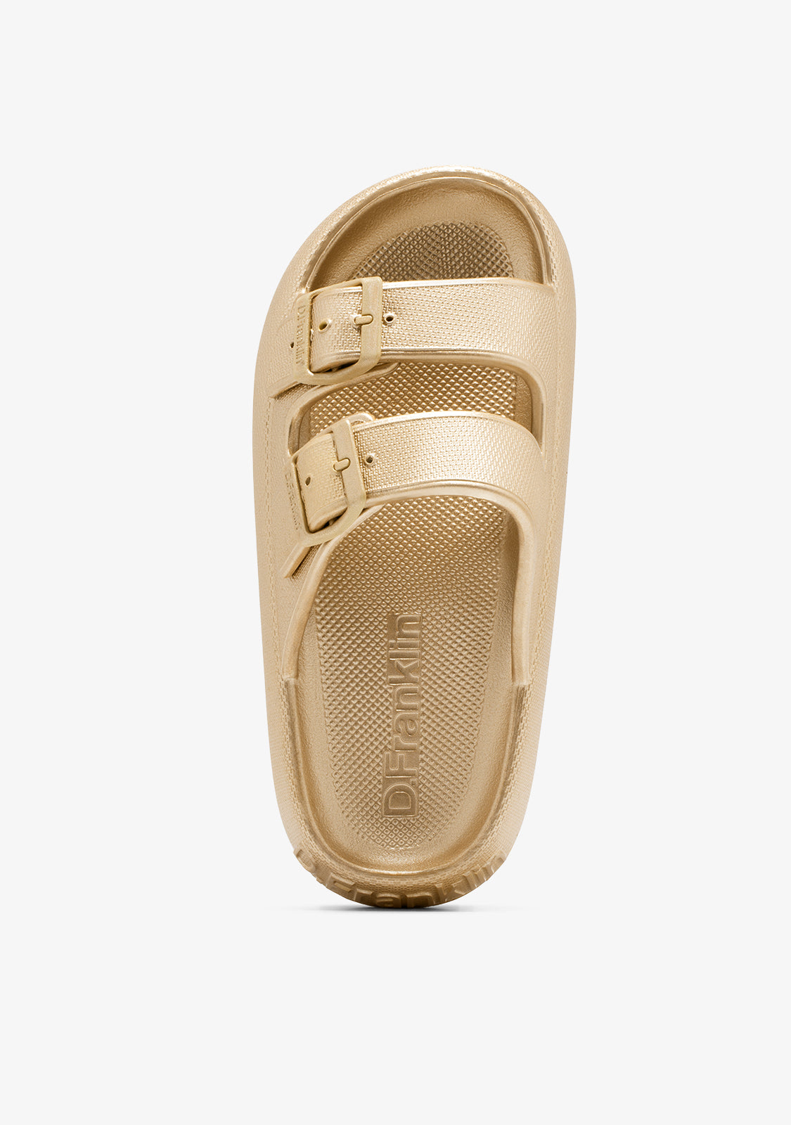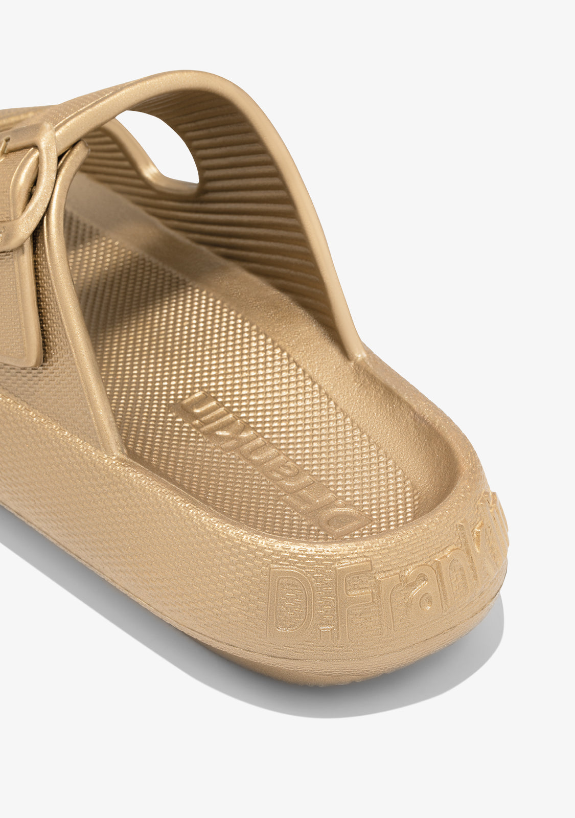 Erhöhen Sie Ihren Komfort und Stil in diesem Sommer mit den Bloomer Bio Gold Sandalen von D.Franklin. Hergestellt aus EVA bieten diese Sandalen außergewöhnliche Leichtigkeit und Haltbarkeit, die jeden Schritt unterstützen. Ihre Sohle mit doppelter Dichte sorgt für überlegene Dämpfung und gewährleistet ganztägigen Komfort.