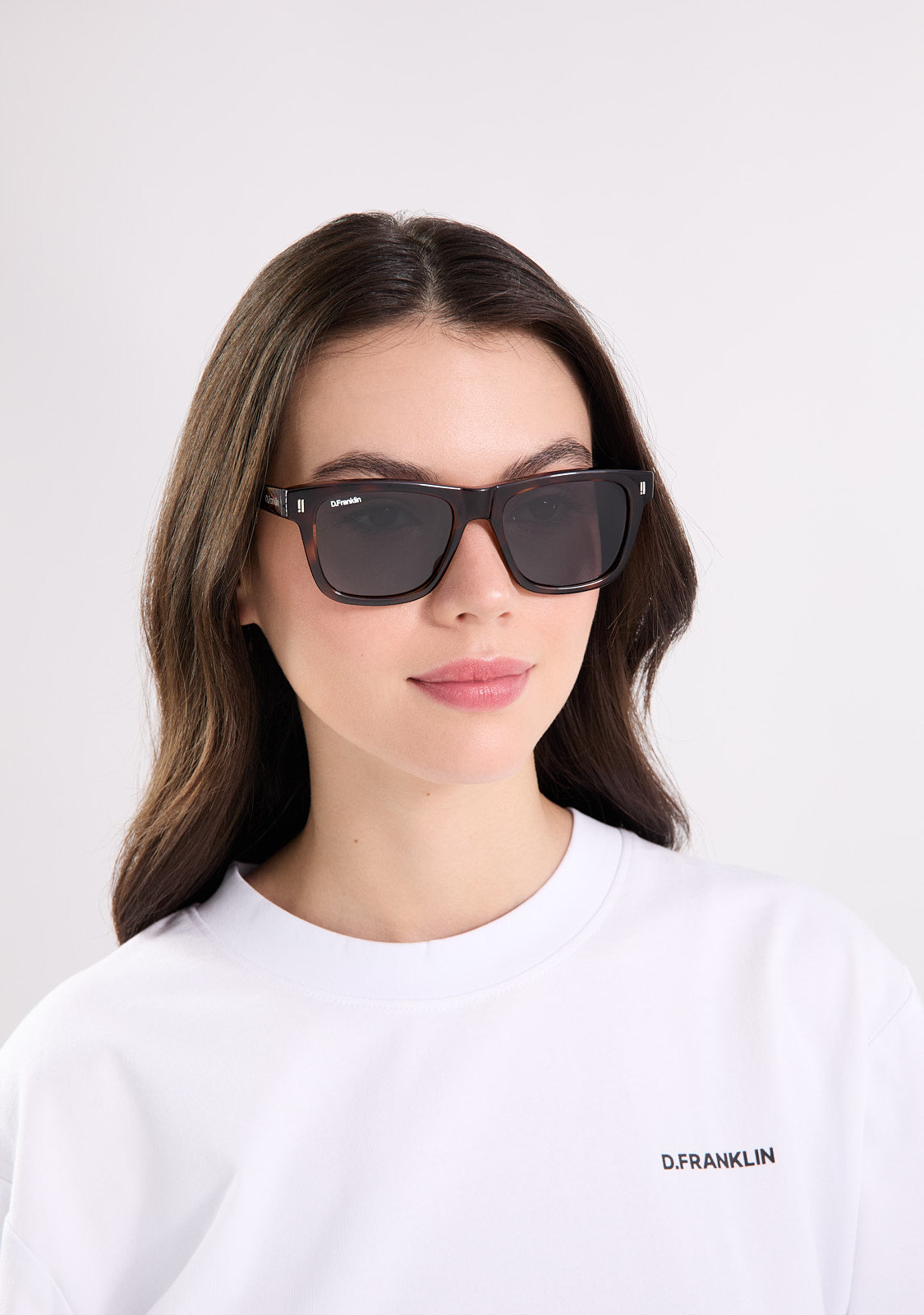 Die Boyd Tort / Black von D.Franklin schlägt die perfekte Balance zwischen modernem Design und Funktionalität. Diese Sonnenbrille, ausgestattet mit einem TR90-Rahmen und einer Brücke, ist ultraleicht und langlebig, während die Bügel aus Acetat zusätzlichen Komfort und langanhaltenden Tragekomfort bieten.