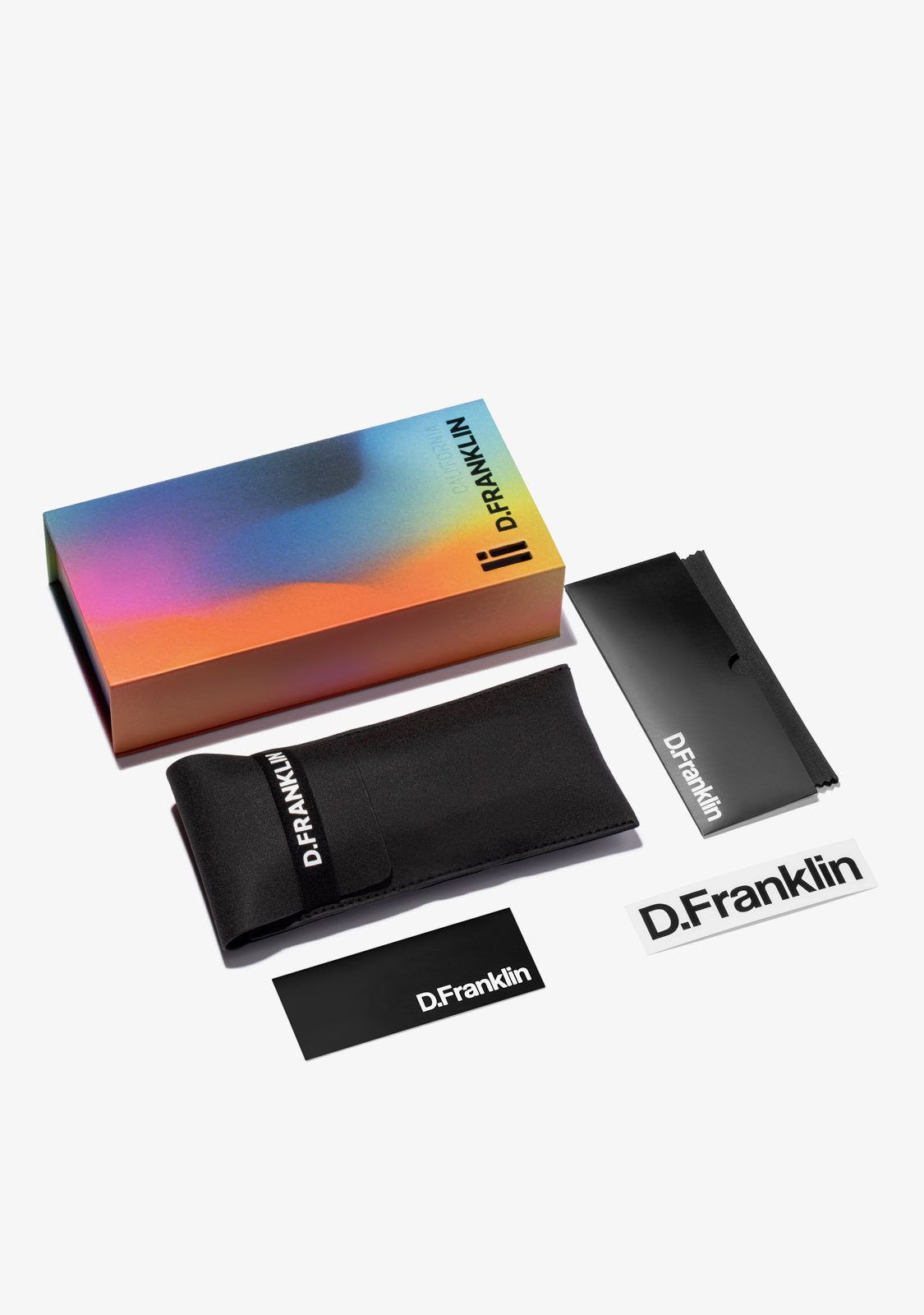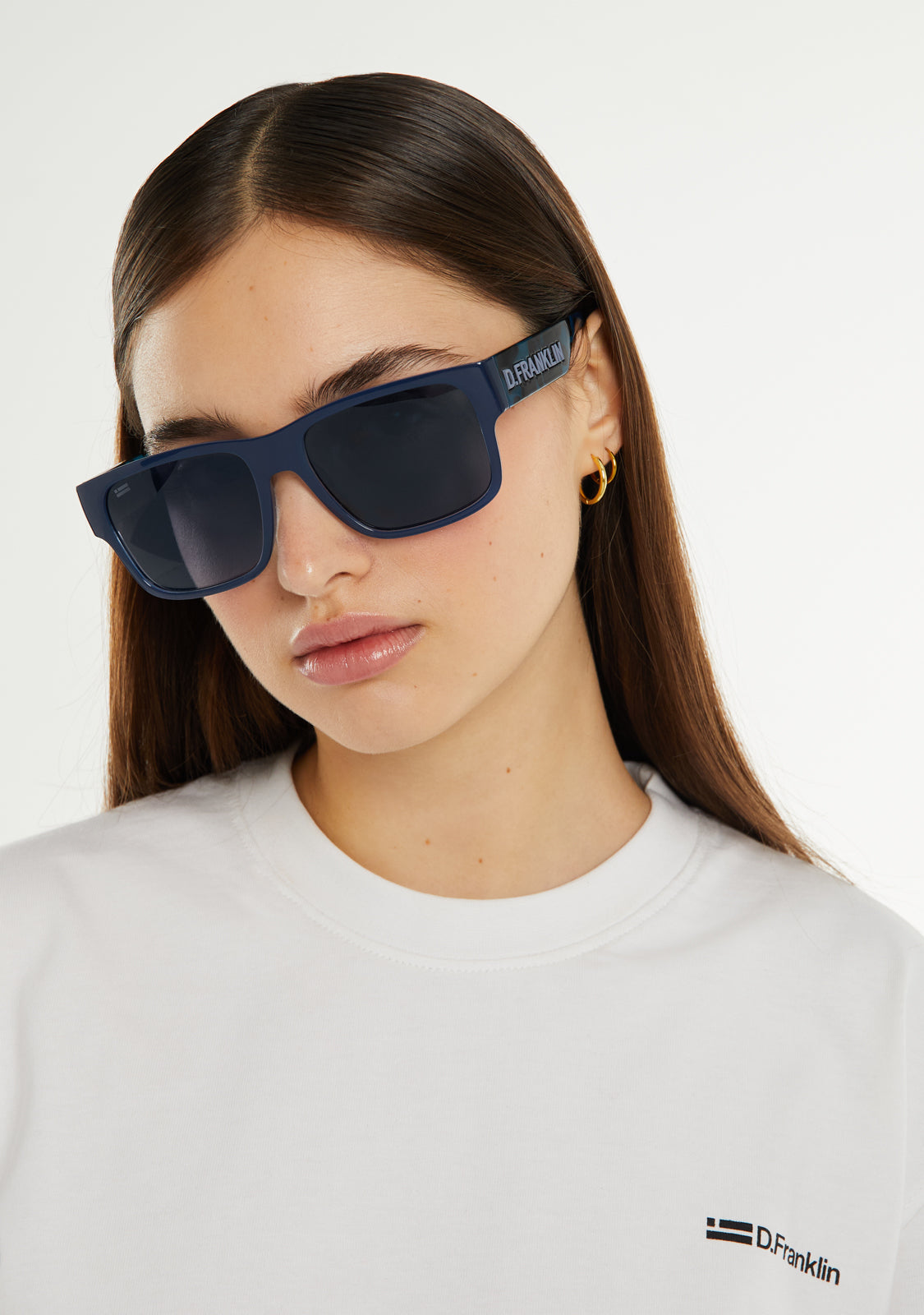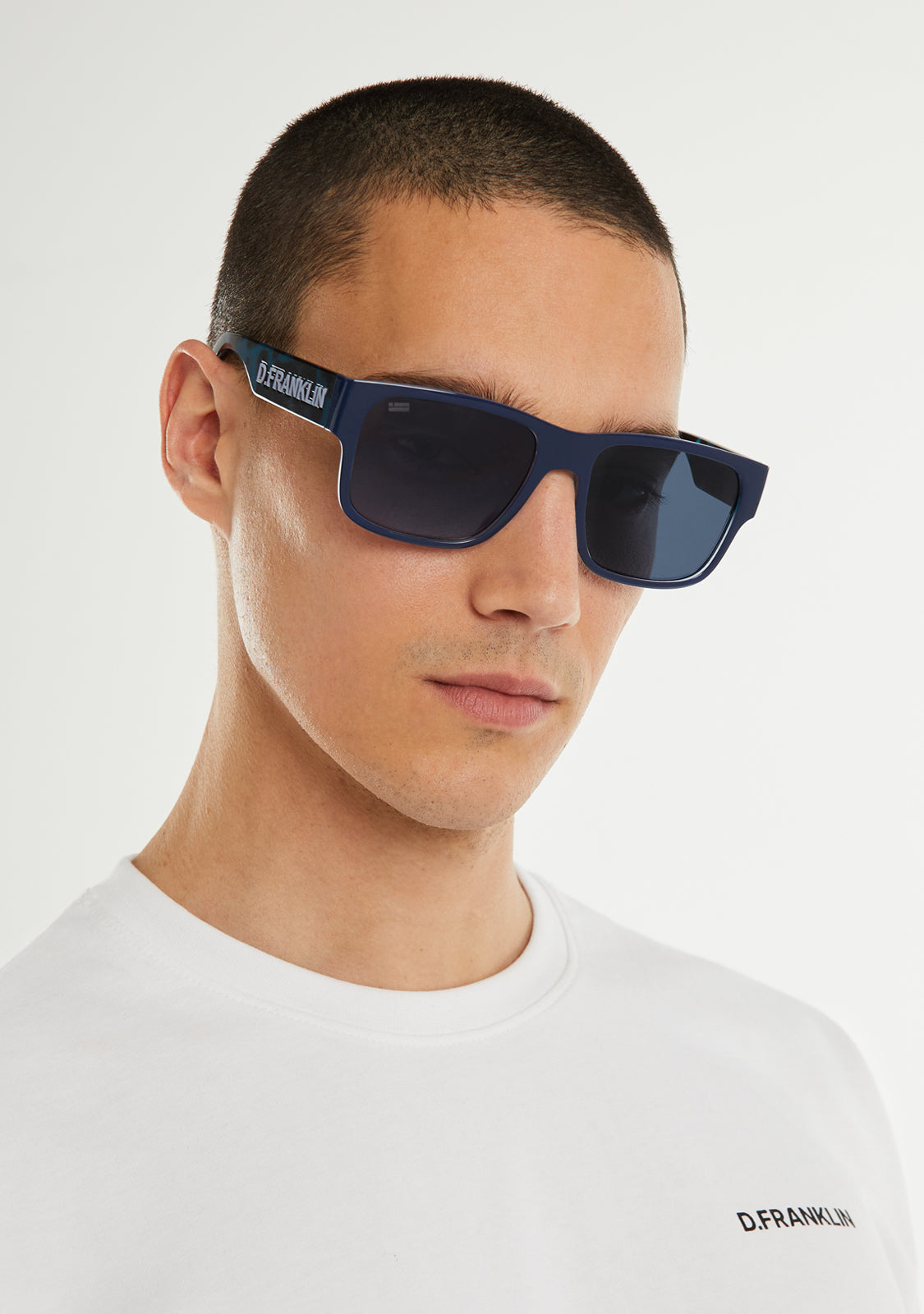 D.Franklin California Sonnenbrillen. Ein Modell, das in Blautönen und lebhaften Details entworfen wurde. Erstellt mit unseren charakteristischen D.Franklin-Details: Logo auf beiden Bügeln eingraviert und Emblem auf dem rechten Glas. Die Glasbreite beträgt 57 mm und die Frontglasbreite 148 mm. Die seitlichen Bügel sind 145 mm lang.