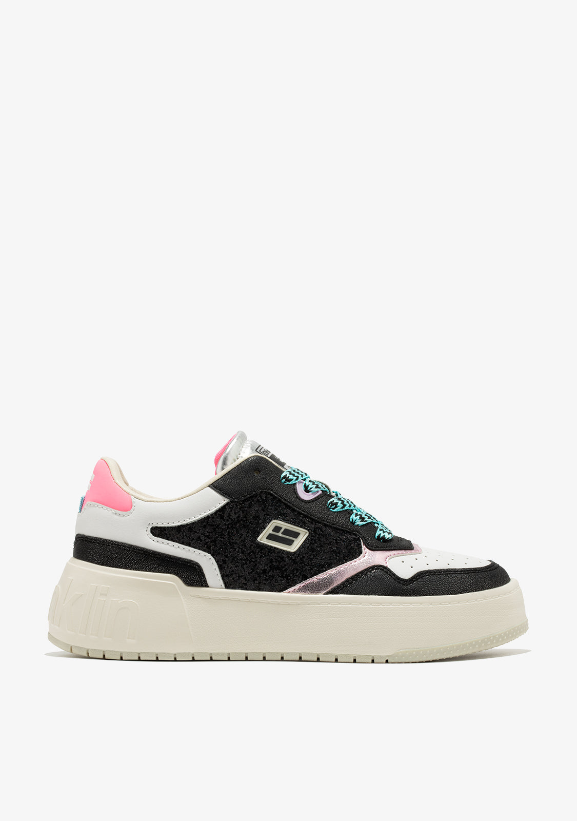 Strahlen Sie mit Stil bei jedem Schritt mit den Court Basic Glitter Black Sneakers von D.Franklin, die für diejenigen entworfen wurden, die auffallen möchten. Dieses Modell verfügt über ein elegantes schwarzes Finish, das Ihren Outfits einen mutigen und raffinierten Touch verleiht.