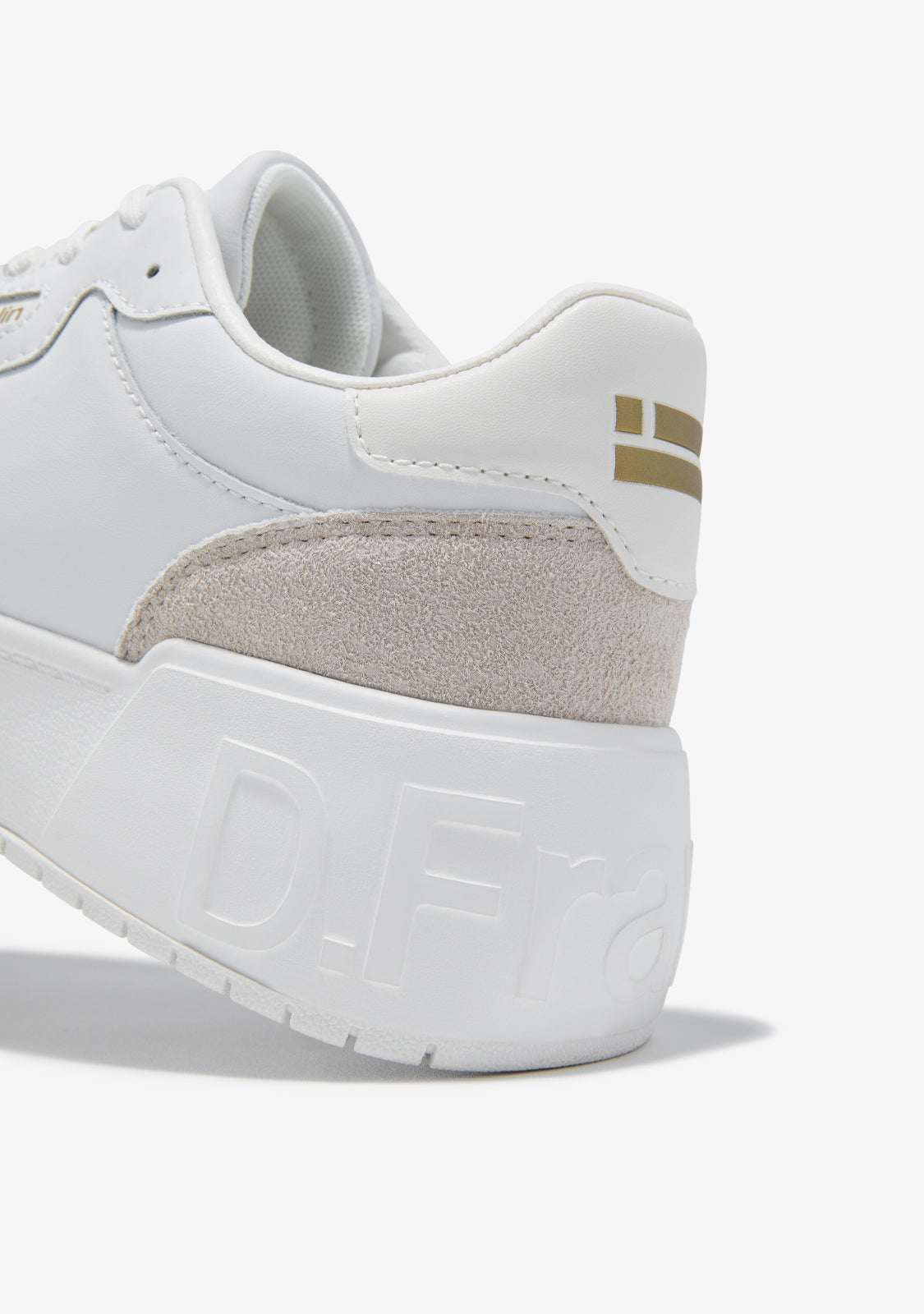 Die Court-Trainer sind mit goldenen und grauen Details gefertigt. Sie verfügen über eine logo-prägierte Sohle an der Ferse, der Sohle und der Seite. Mit 4 cm Höhe und einer Phylon-Sohle für leichte Dämpfung. Das anatomische Fußbett ist ebenfalls herausnehmbar.