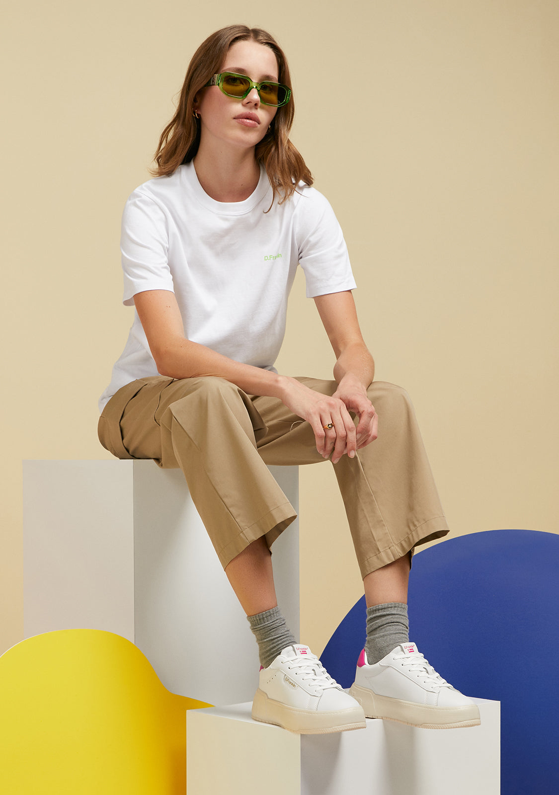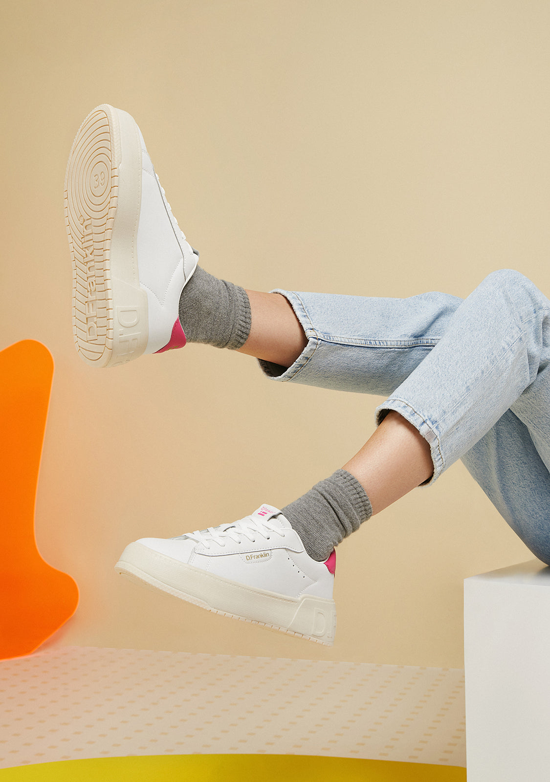 Minimale Trainer mit sportlicher Inspiration. Das ikonische Design unserer Ikonografie transcendet den Platz und erreicht die Straßen. Verbinde deine D.Franklin Ästhetik mit einem Retro-Cut-Emblem und einfachen Details.