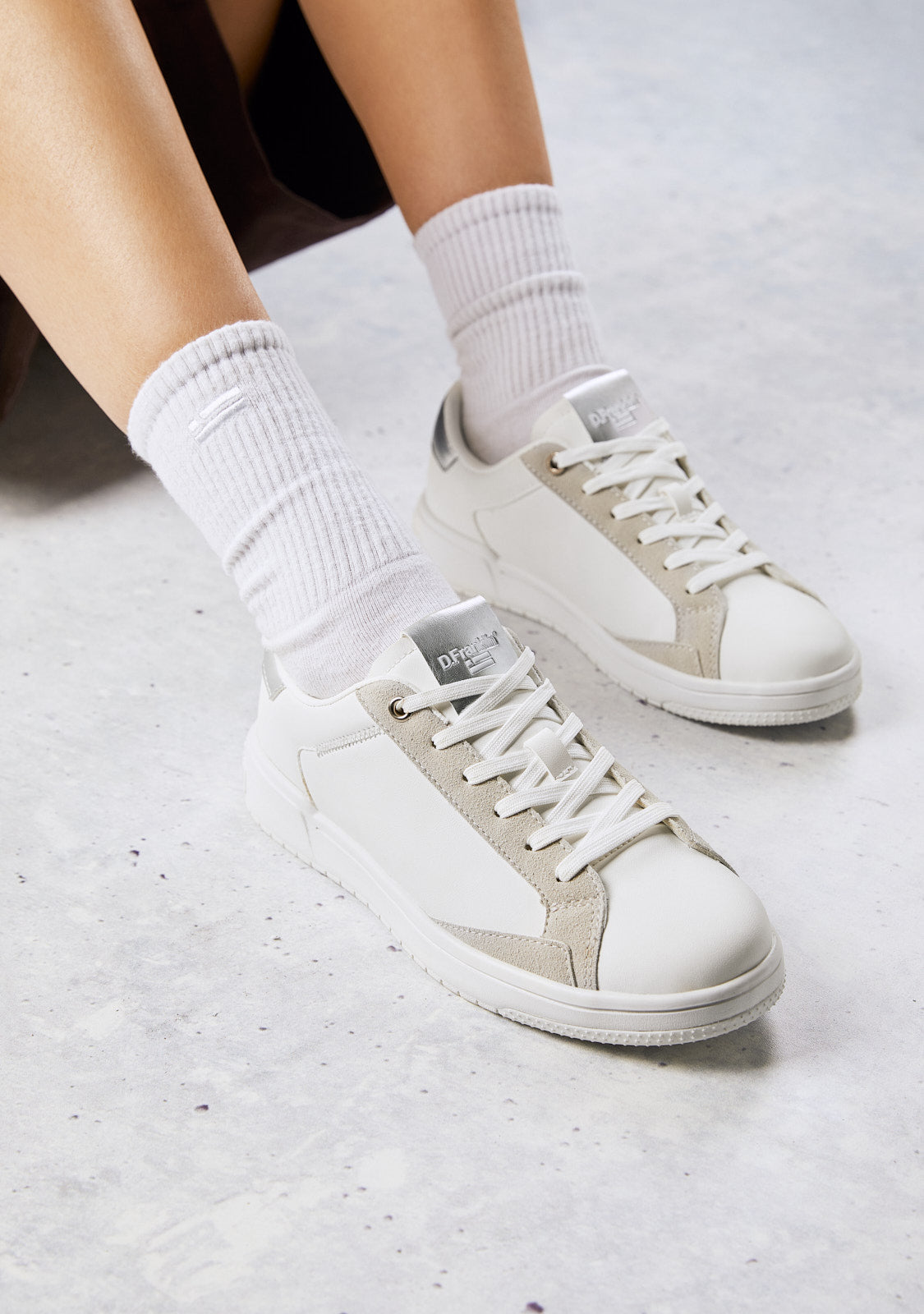 Minimale Trainer mit sportlicher Inspiration. Das ikonische Design unserer Ikonografie transcendet den Platz und erreicht die Straßen. Verbinde deine D.Franklin-Ästhetik mit einem retrogeschnittenen Emblem und einfachen Details.