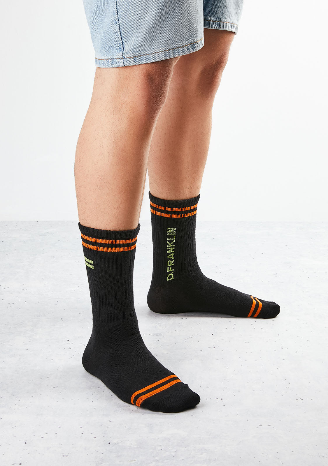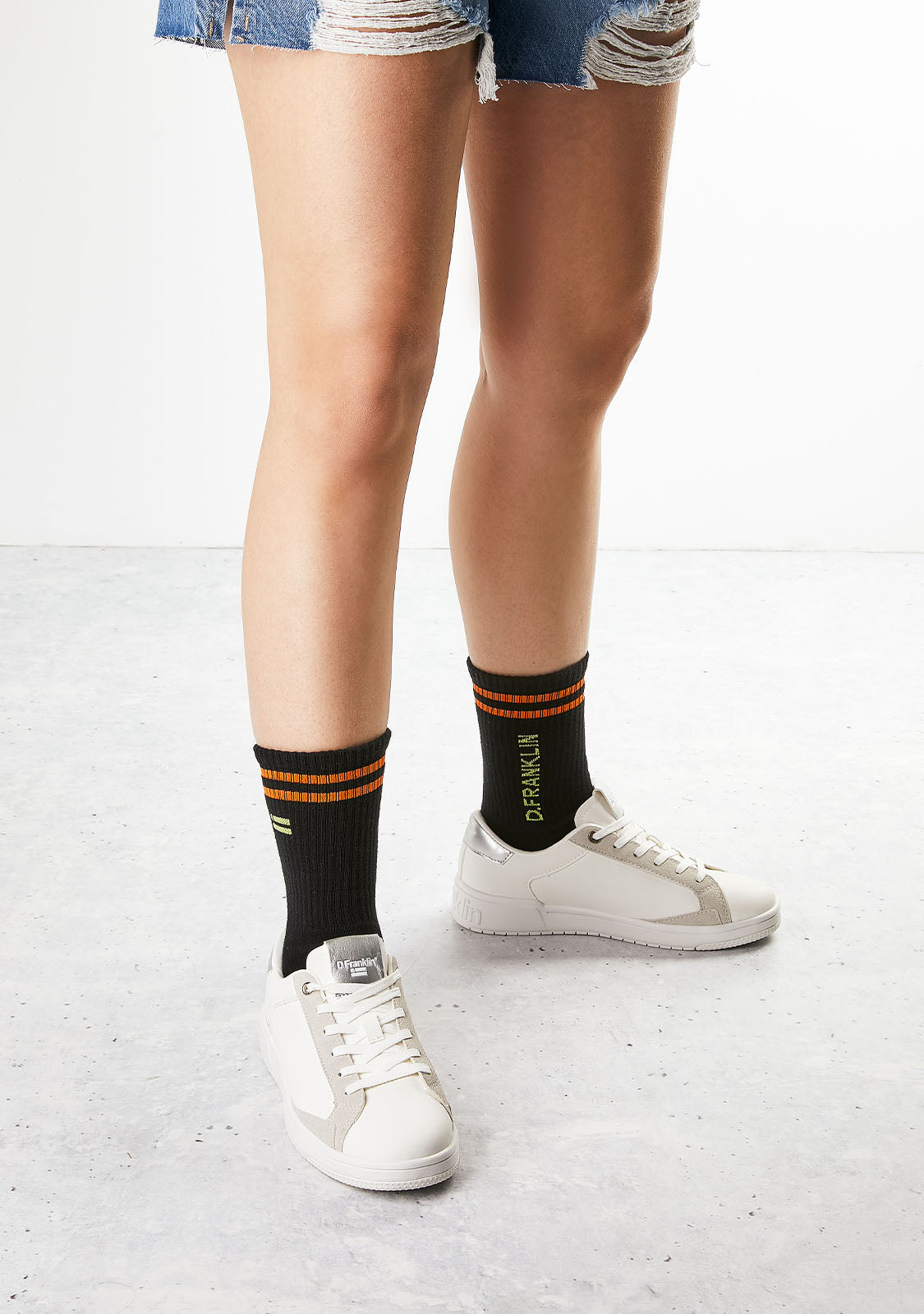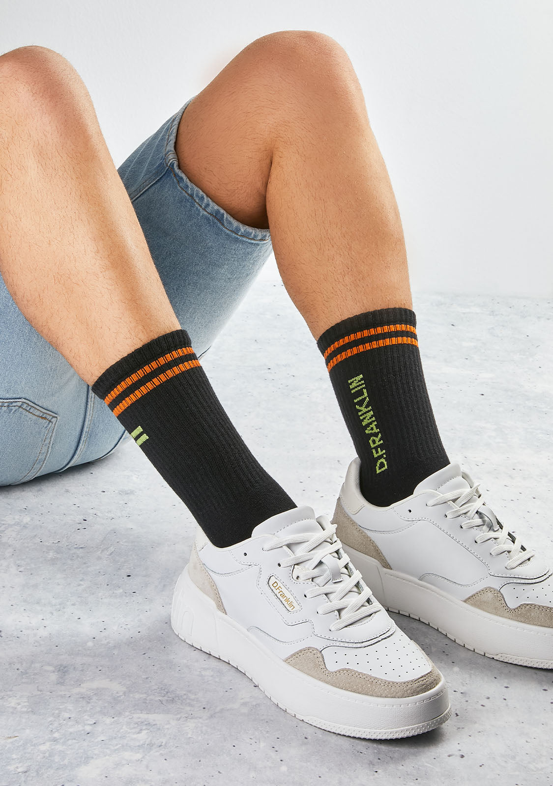 D.Franklin hohe Socken. Der ungewöhnliche Akzent, um Ihre Outfits mit Sneakers zu betonen.