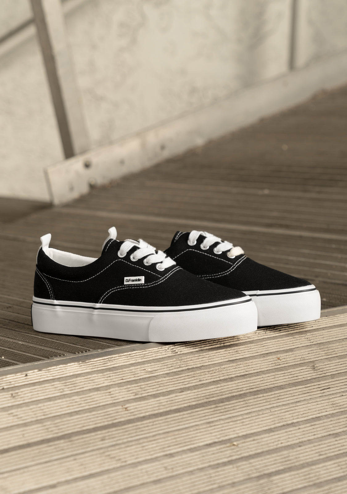 Ein unverwechselbares Symbol. Eclipse ist die Kollektion, die urbane Empfindungen in Sneakers erneuert und die beliebtesten Kombinationen und Texturen bringt. Die Eclipse Black bestehen aus Canvas und bieten maximale Leichtigkeit. In Schwarz gehalten, kombinieren sie Einfachheit mit der weißen Farbe ihrer extraleichten Sohle und werden zu einem Basic für jeden Stil.