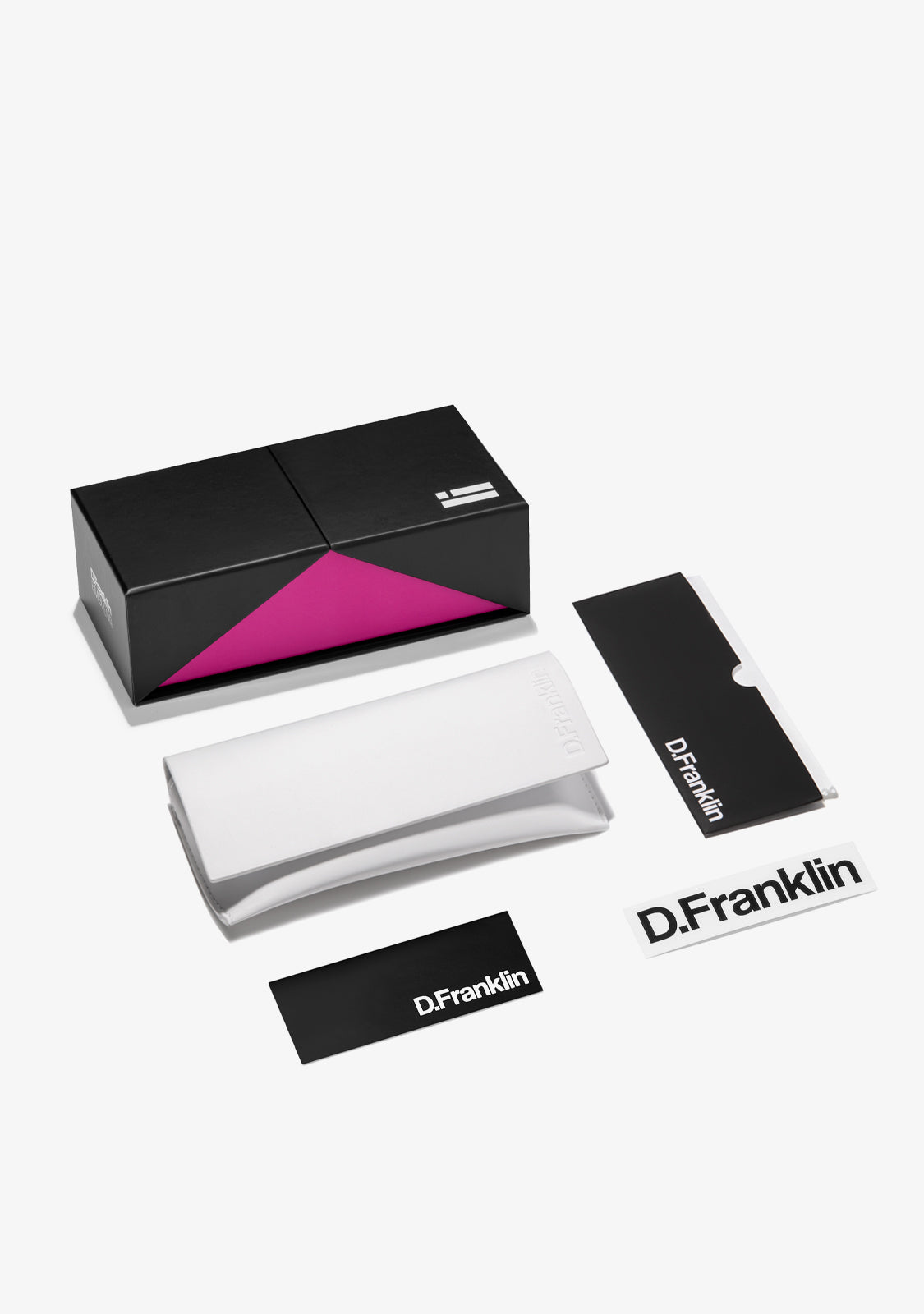 Braune polarisierte Gläser und hellfarbige Rahmen verbessern die Ästhetik dieses Designs. Es verfügt über unsere charakteristische D.Franklin-Flagge mit einem metallischen Gold-Finish an beiden Bügeln. Mit einer Glasbreite von 51 mm und einem Frontrahmen von 146 mm schmeicheln diese Brillen den meisten Gesichtern. Die seitlichen Bügel haben eine Länge von 140 mm.