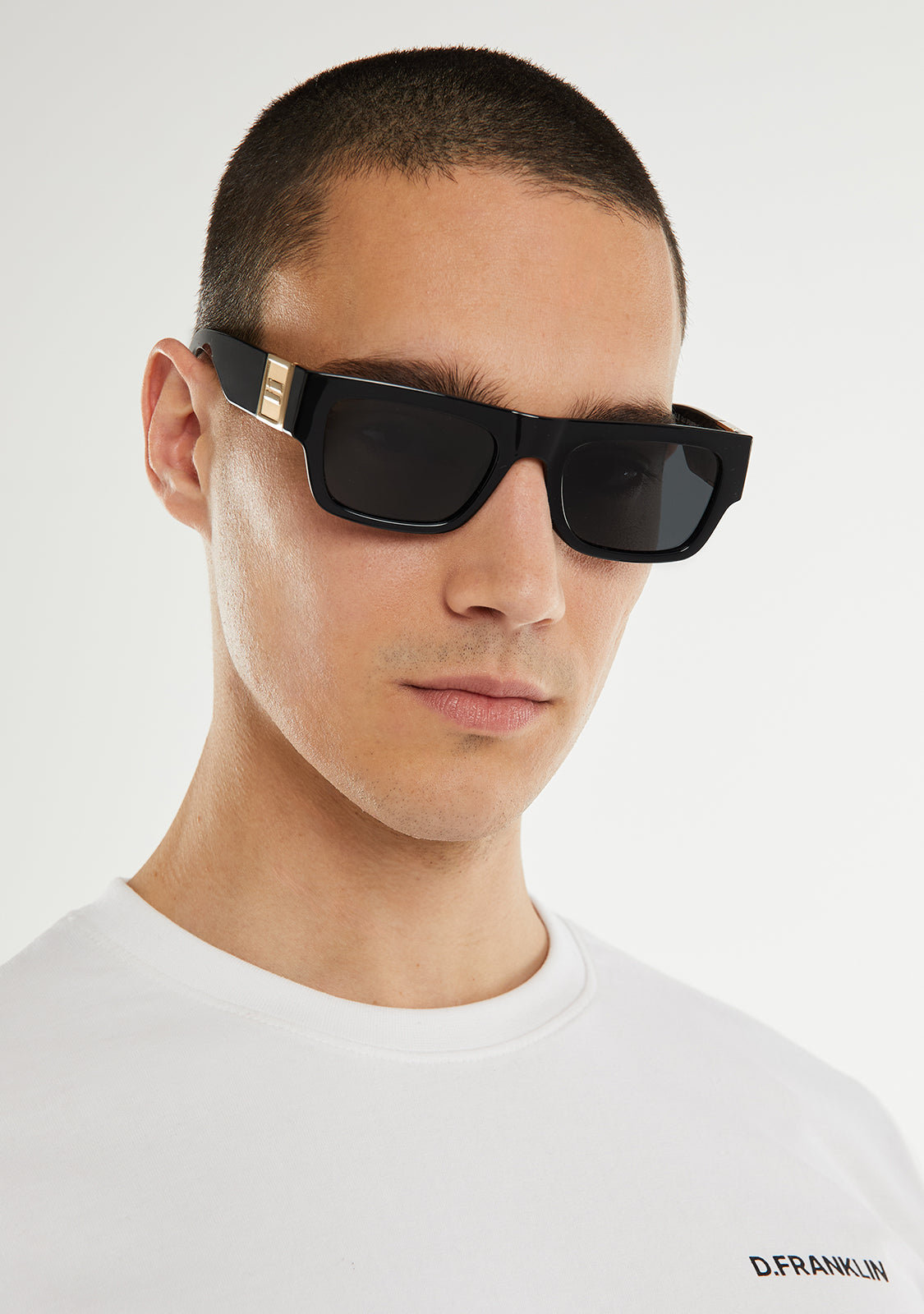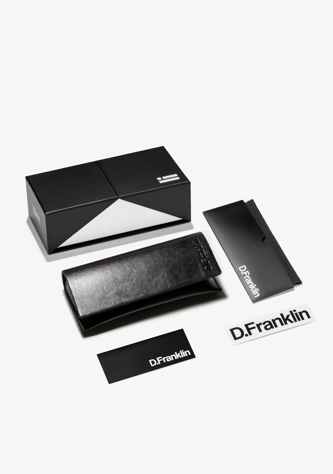 Getönte polarisierte Gläser und dunkle Rahmen heben die Ästhetik dieses Designs hervor. Es verfügt über unsere charakteristische D.Franklin-Flagge mit einem metallischen Gold-Finish an beiden Bügeln. Mit einer Glasbreite von 52 mm und einem Frontrahmen von 141 mm schmeicheln diese Brillen den meisten Gesichtern. Die seitlichen Bügel haben eine Länge von 140 mm.