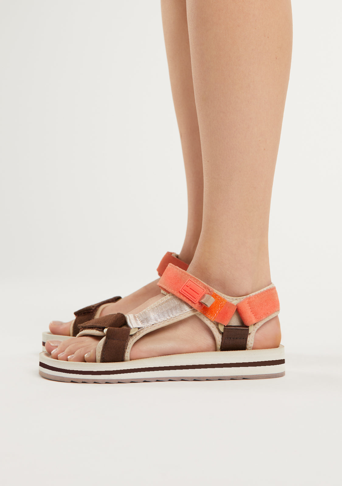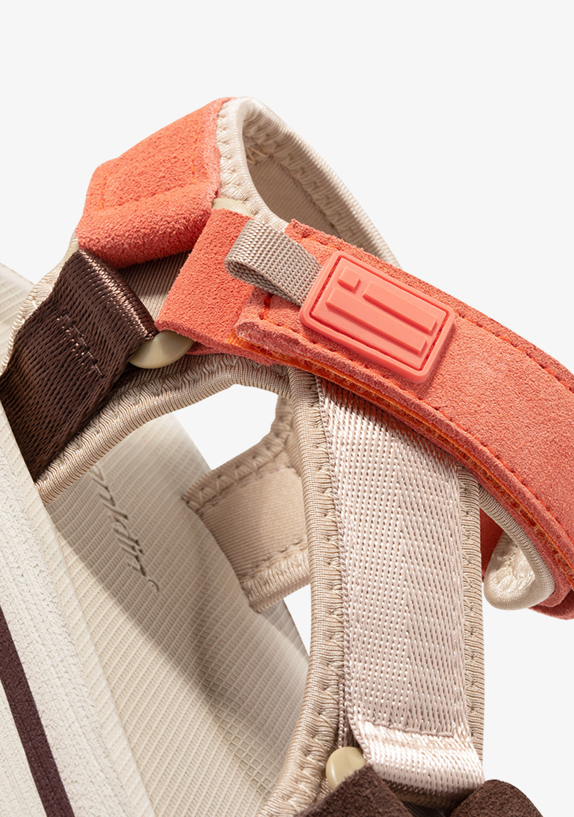 Die Forest High Strips Orange Sandalen von D.Franklin sind die perfekte Balance zwischen Komfort und Funktionalität. Sie sind mit einem praktischen Klettverschluss ausgestattet, der einen sicheren und individuellen Sitz bietet, ideal für jede Aktivität.