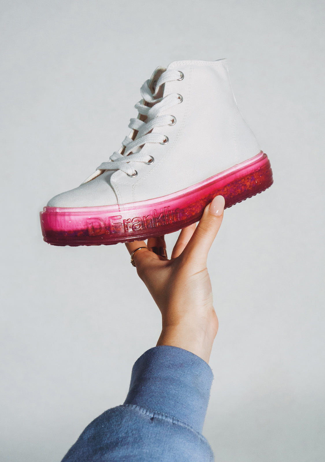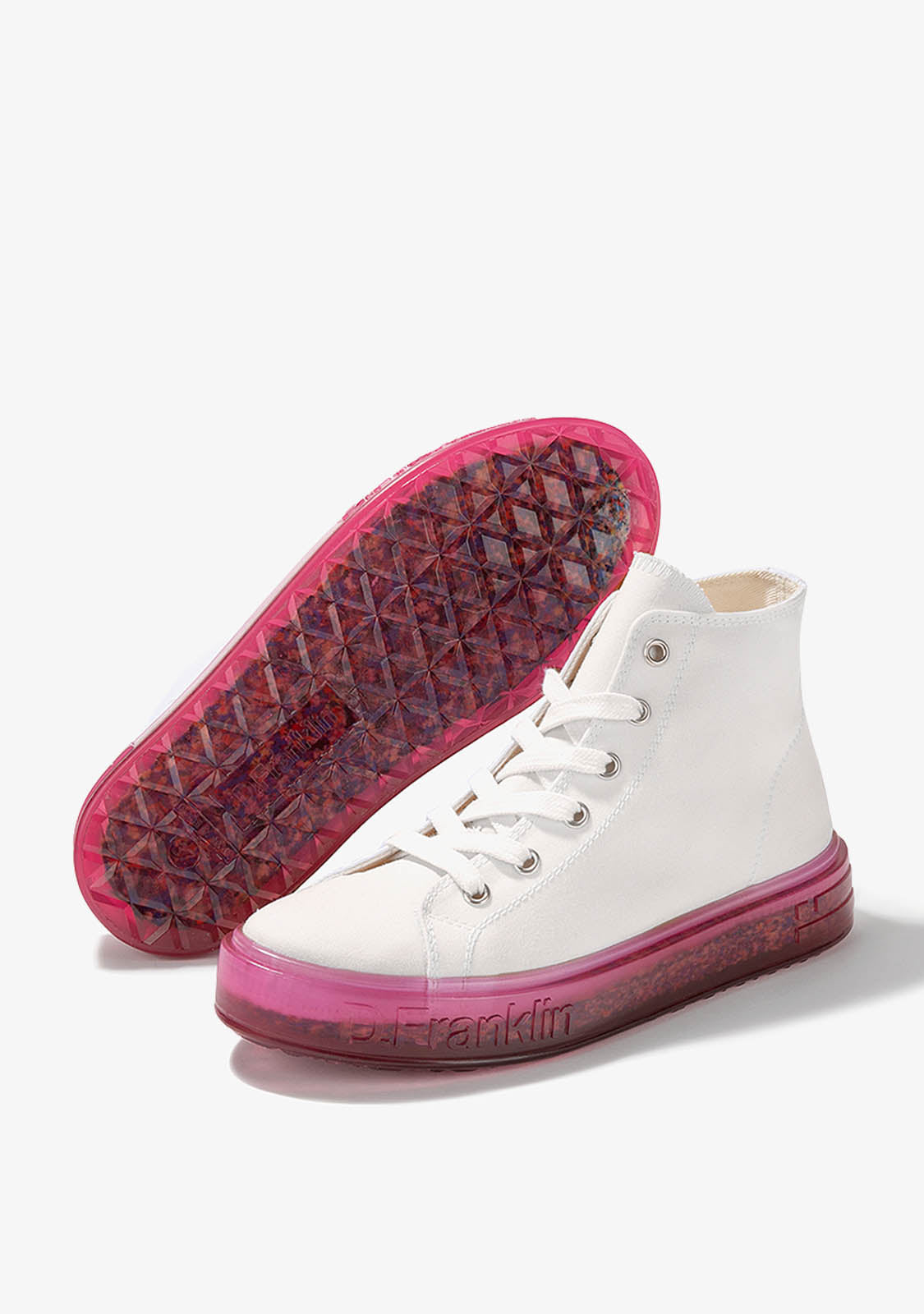 Die innovativen Sneakers Gumme Superstar Weiß / Pink sind aus verschiedenen kreativen Einflüssen in den Bereichen Mode und Sport entstanden, jetzt im Hi-Top-Design. Wie in jeder Kollektion konzentriert sich D.Franklin darauf, trendige und tragbare Styles zu kreieren. HERGESTELLT IN SPANIEN
