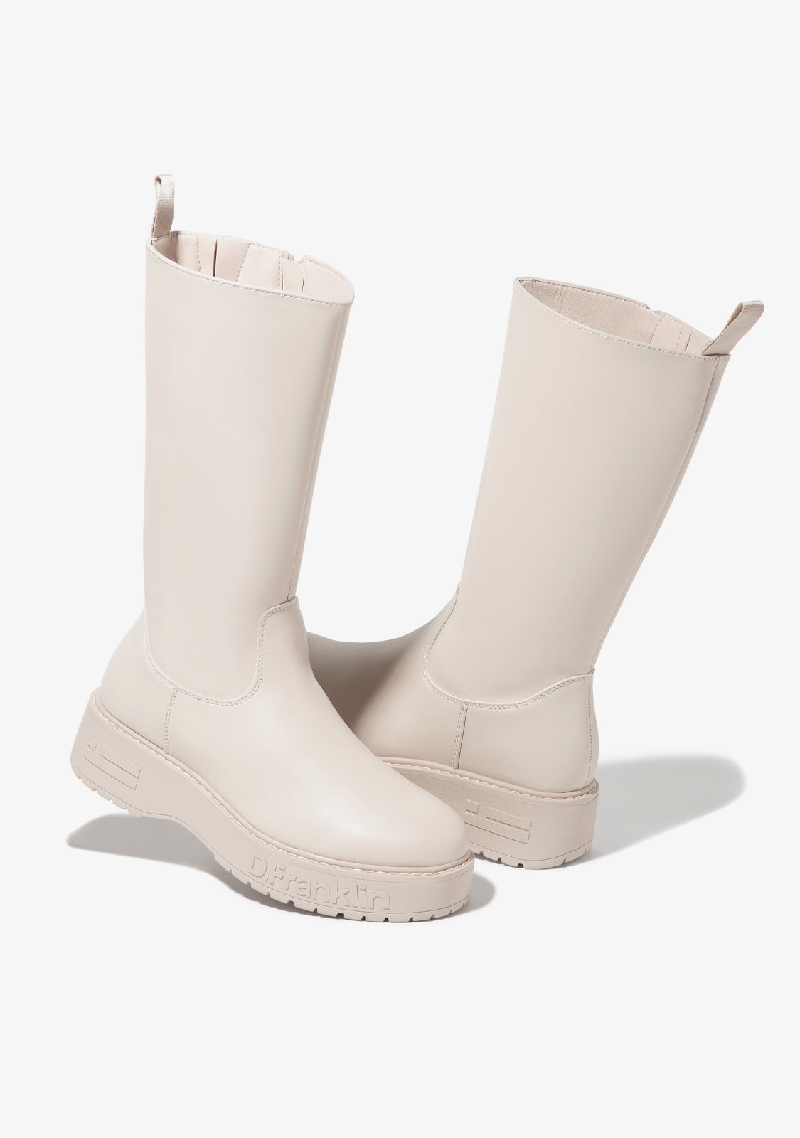 Dieses beige D.Franklin-Modell verfügt über einen Reißverschluss auf der Innenseite für eine perfekte Passform. Die Sohle im Track-Stil bietet unvergleichlichen Grip. Das geprägte Logo und die Emblempersonalisierung an der Keil- und Zehenkappe.