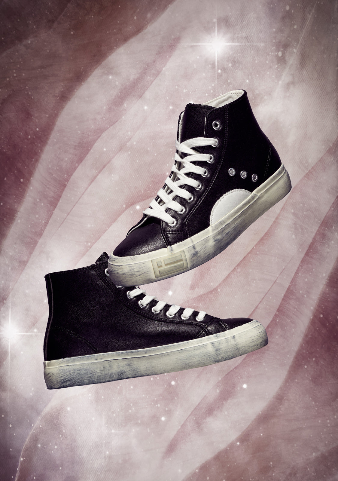 Dieses Modell besteht aus Kunstleder und Mikrofaser in Schwarz- und Weißtönen. Es verfügt über Baumwollschnürsenkel und einen passenden weißen Halbkreis mit drei metallischen Details. Weiße monochrome 4 cm Gummisohle mit D.Franklin Emblem an der Seite und Schriftzug an der Ferse.