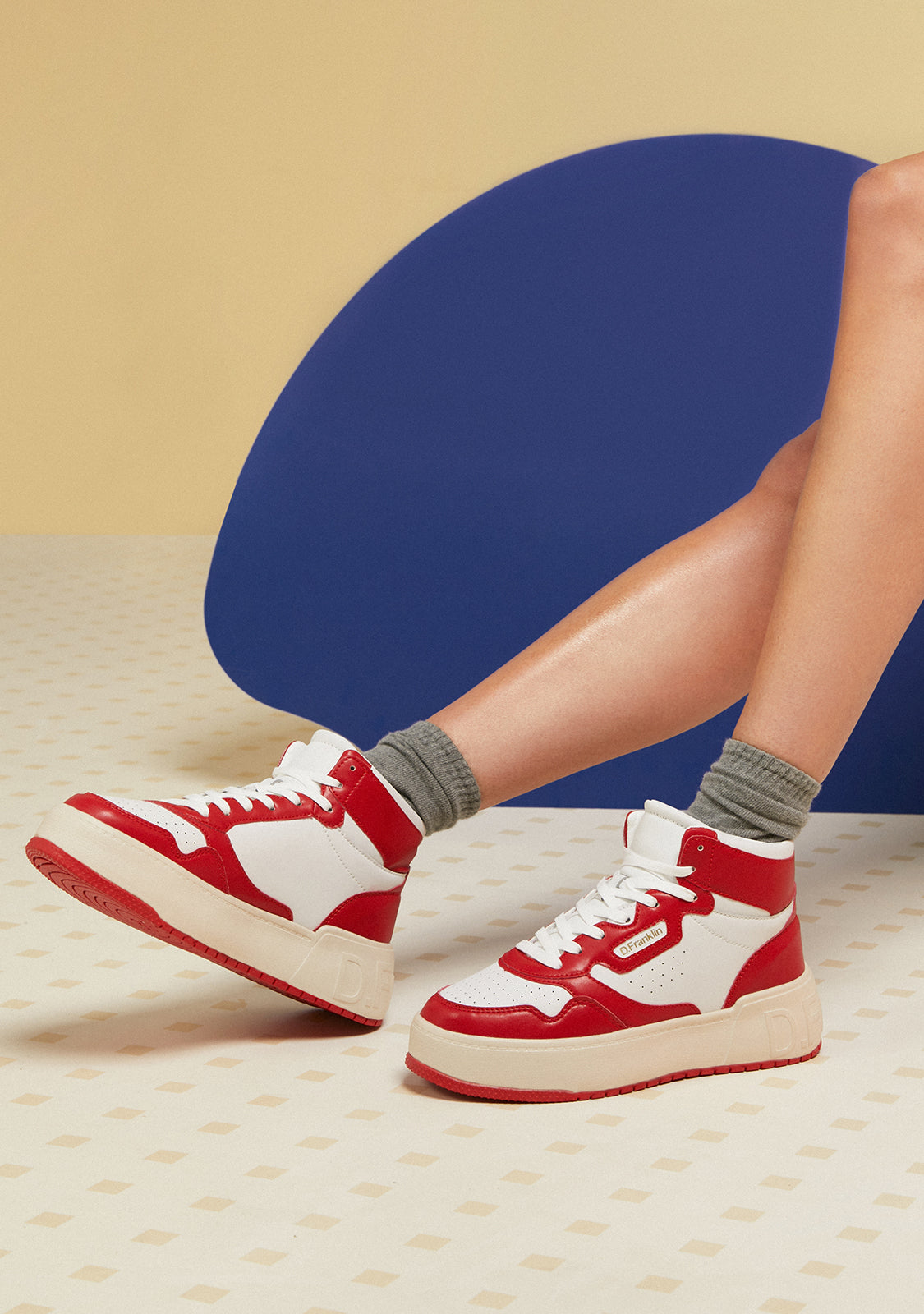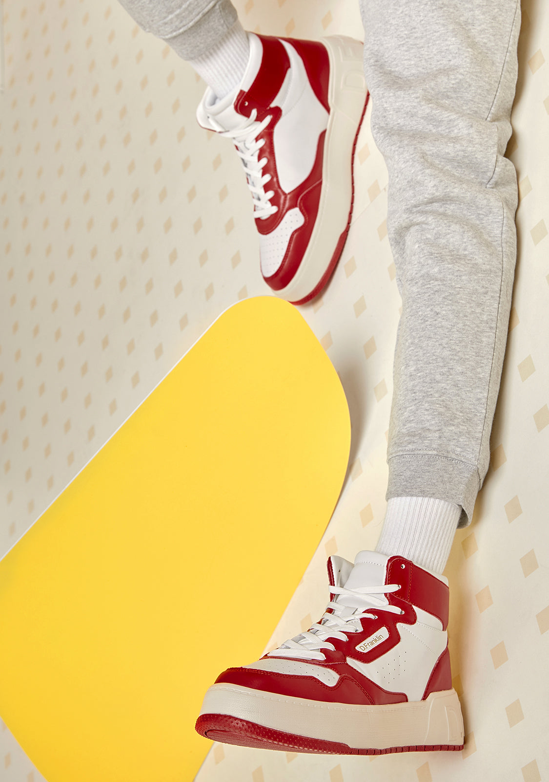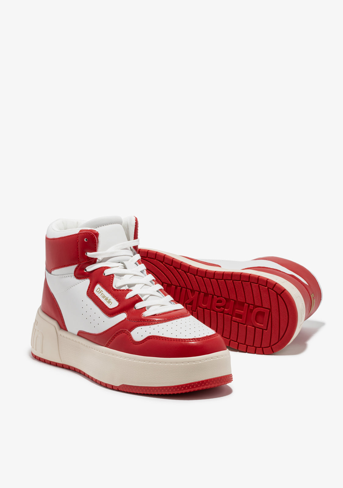 Die Court D.Franklin Trainer sind mit roten Details und Baumwollschnürsenkeln gefertigt. Die kontrastierende Sohle verfügt über ein geprägtes Logo sowohl an der Ferse als auch an der Sohle. Sie haben eine Höhe von 4 cm und eine Phylon-Sohle für leichte Dämpfung.