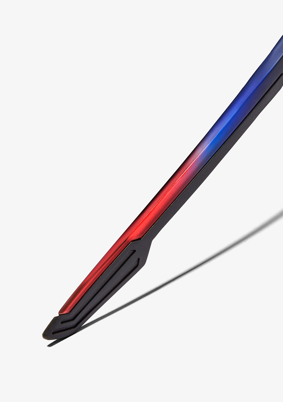 Das Modell Hurricane Fifty Grad Orange / Multicolor sticht durch seinen aerodynamischen Rahmen und das markante Finish hervor. Es verfügt über eine Frontbreite von 152 mm und 142 mm breite Gläser, präzise entwickelt, um den Luftstrom zu optimieren und den Windwiderstand zu reduzieren. Die 130 mm langen Bügel zeigen unser Emblem auf beiden Seiten, während Silikonpads an den Enden und am Nasensteg für einen sicheren, komfortablen Halt sorgen.