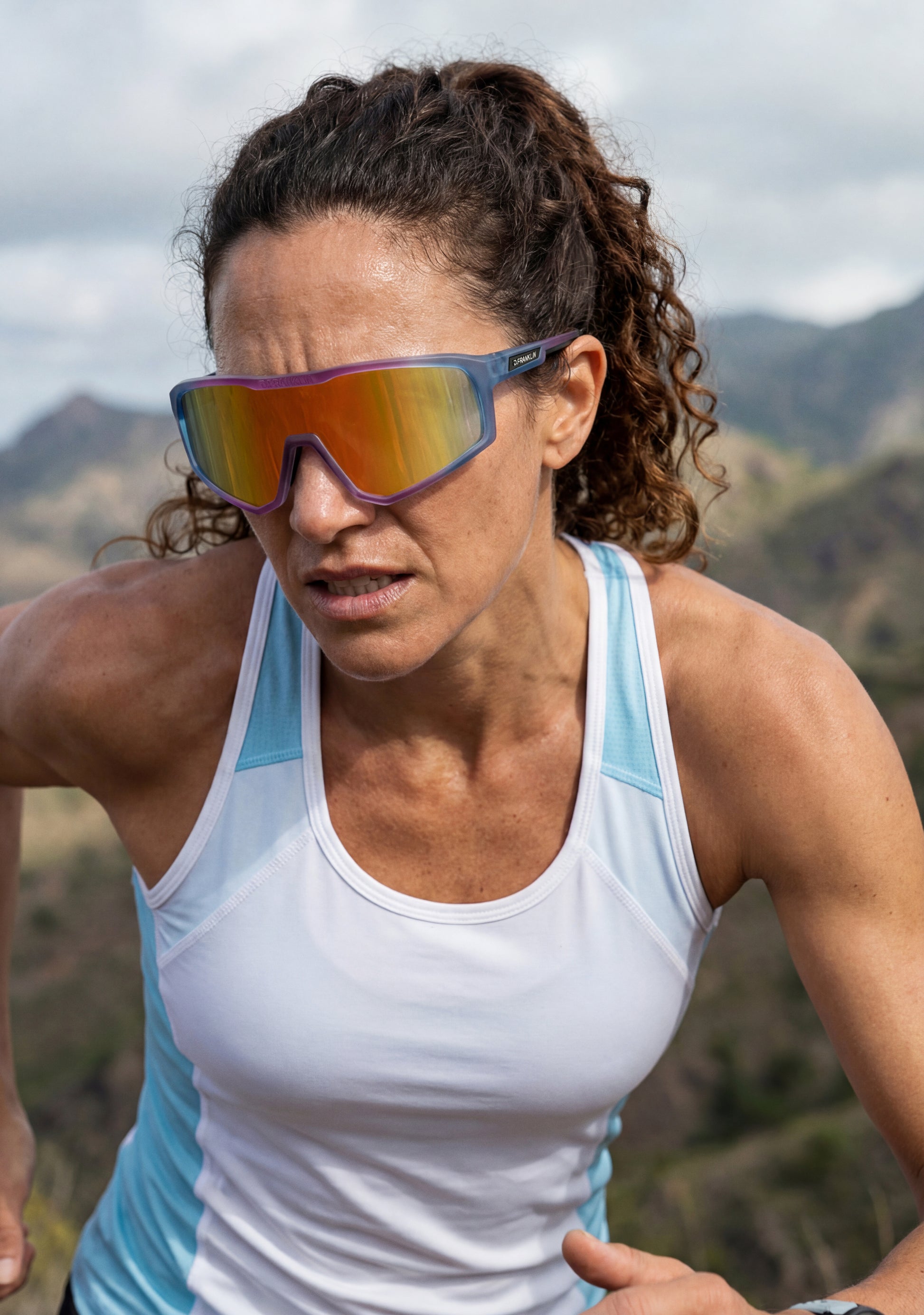 Sportsonnenbrille mit einer kurvigen Ästhetik. Tritt in das Auge des Sturms ein – mit einem Design, das von der Kraft und Geschwindigkeit von Hurrikanen inspiriert ist.