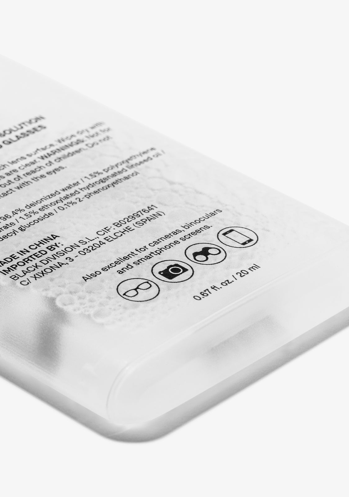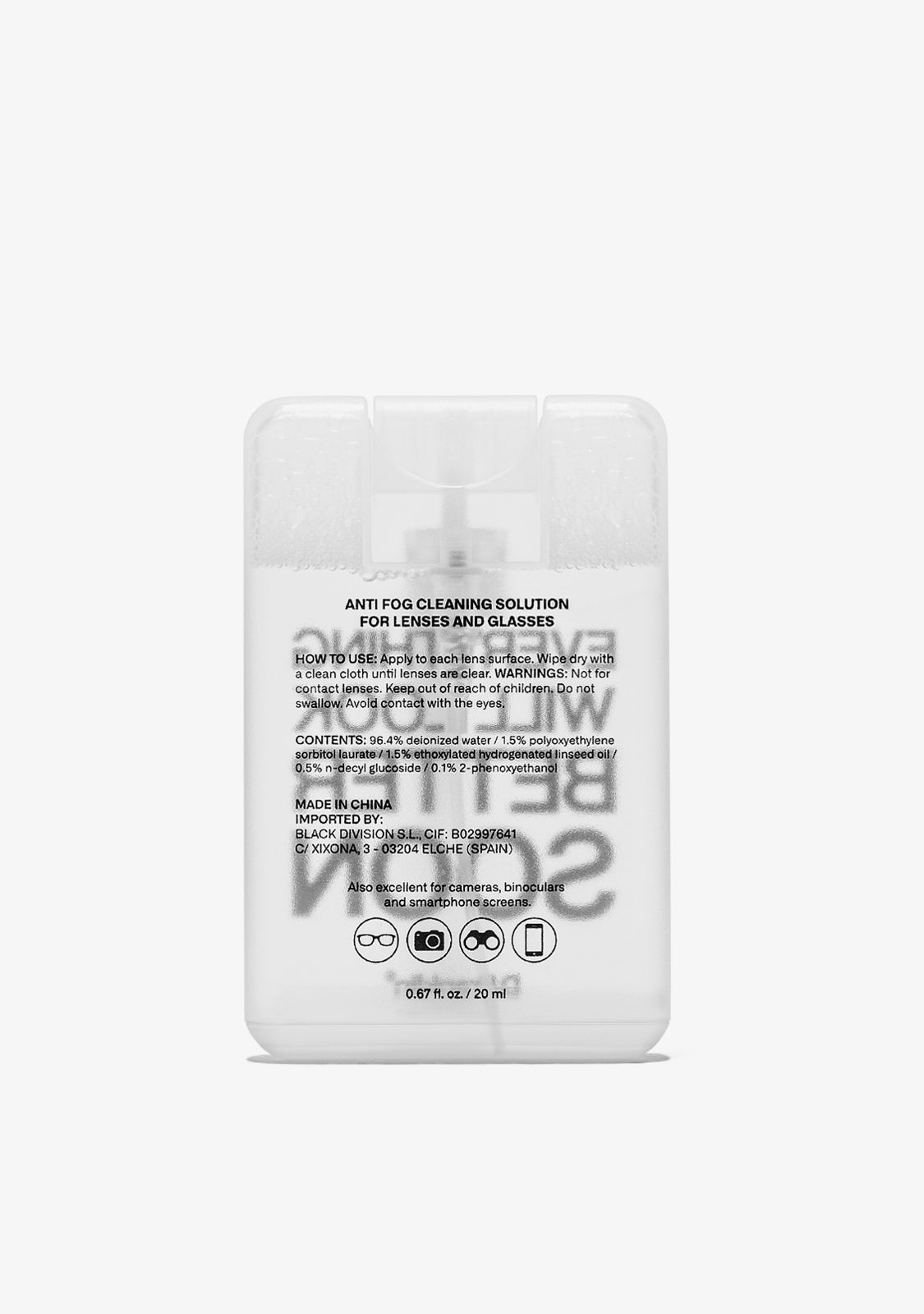 Anti-Beschlag-Reinigungsmittel für Linsen und Brillen.