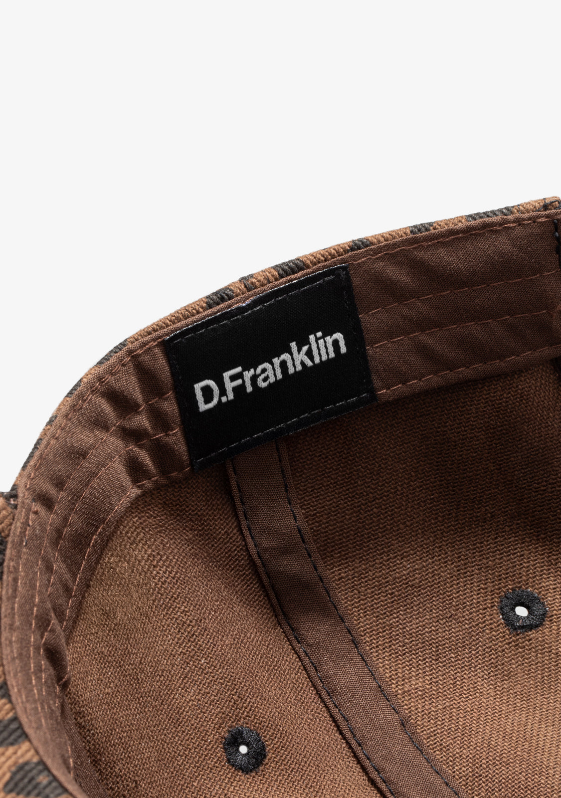 Sie hat einen braunen Chenille-Aufnäher mit einem „D.“ auf der Vorderseite. Die Metallschnalle auf der Rückseite ermöglicht eine individuelle Größenanpassung. Außerdem gibt es ein gewebtes Etikett mit dem Markennamen im Inneren der Kappe.