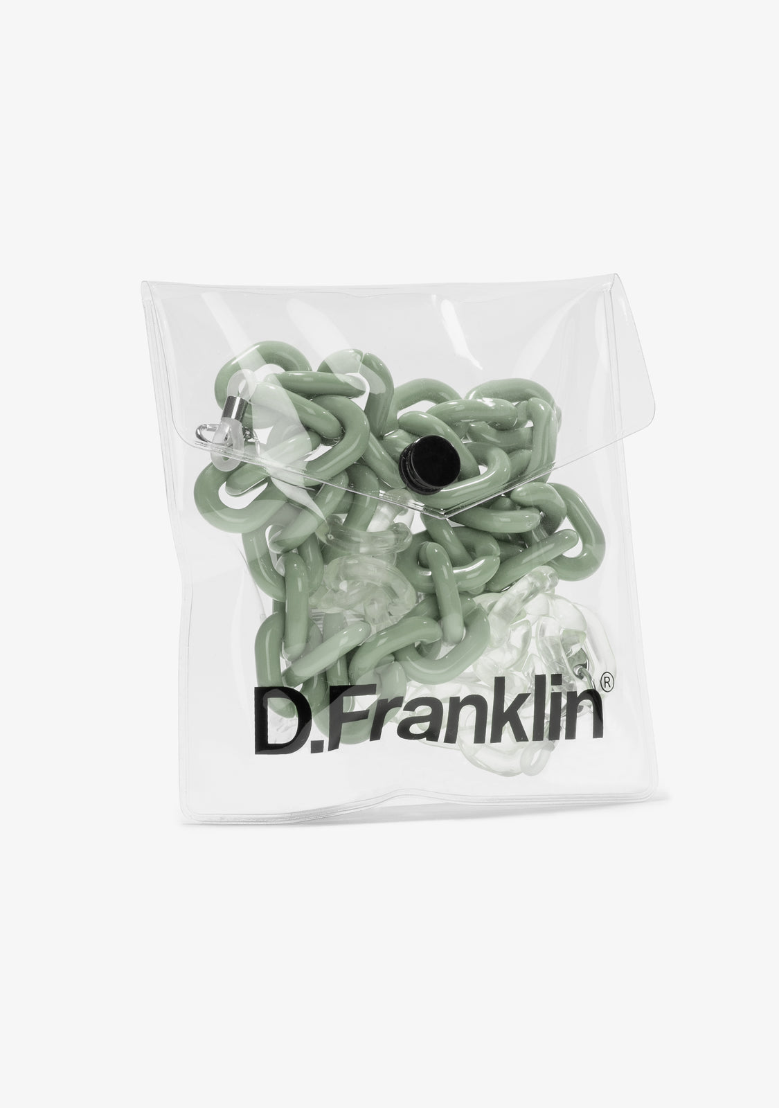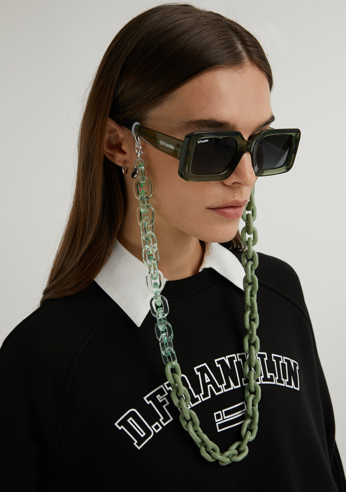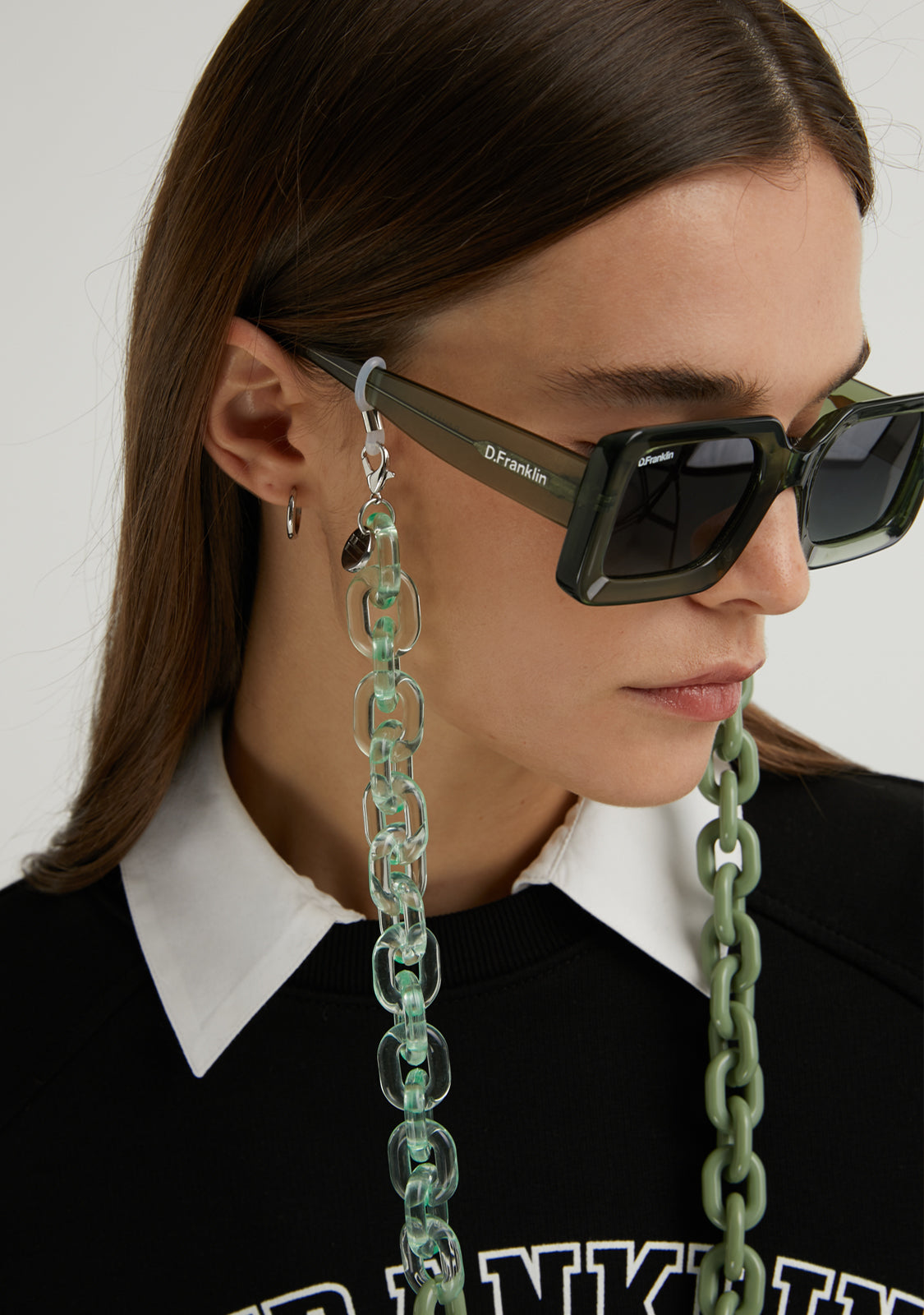Der Moment ist gekommen. Die neuen D.Franklin Brillenketten sind da. Die begehrtesten Accessoires, die Trends setzen und mit allem Bekannten brechen. Wählen Sie aus einer Vielzahl einzigartiger Designs und hängen Sie Ihre Brille stolz auf. Das Modell Link Chain Mint bringt dank seiner Farbkombination einen originellen und anderen Stil.
