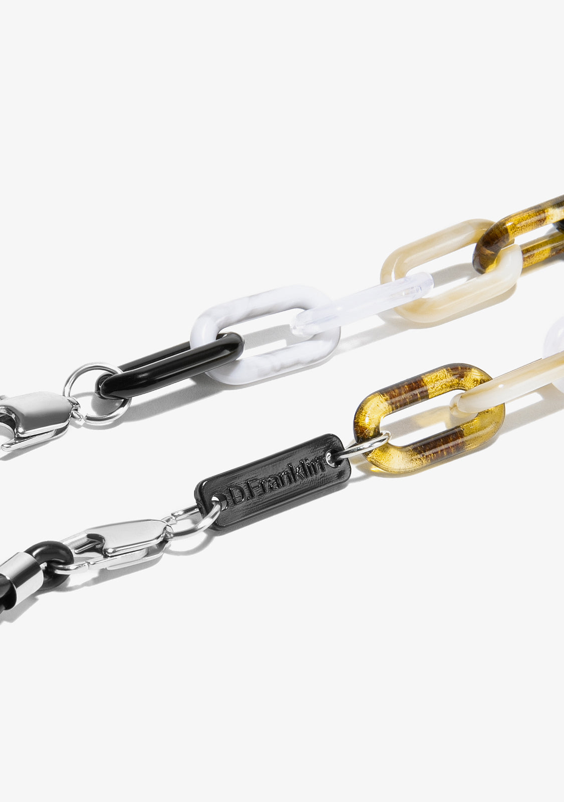 Der Moment ist gekommen. Die neuen D.Franklin Brillenketten sind da. Die begehrtesten Accessoires, die Trends setzen und mit allem Bekannten brechen. Wählen Sie aus einer Vielzahl einzigartiger Designs und hängen Sie Ihre Brille stolz auf. Das Modell Link Chain Multi Carey bringt einen eleganten Stil.