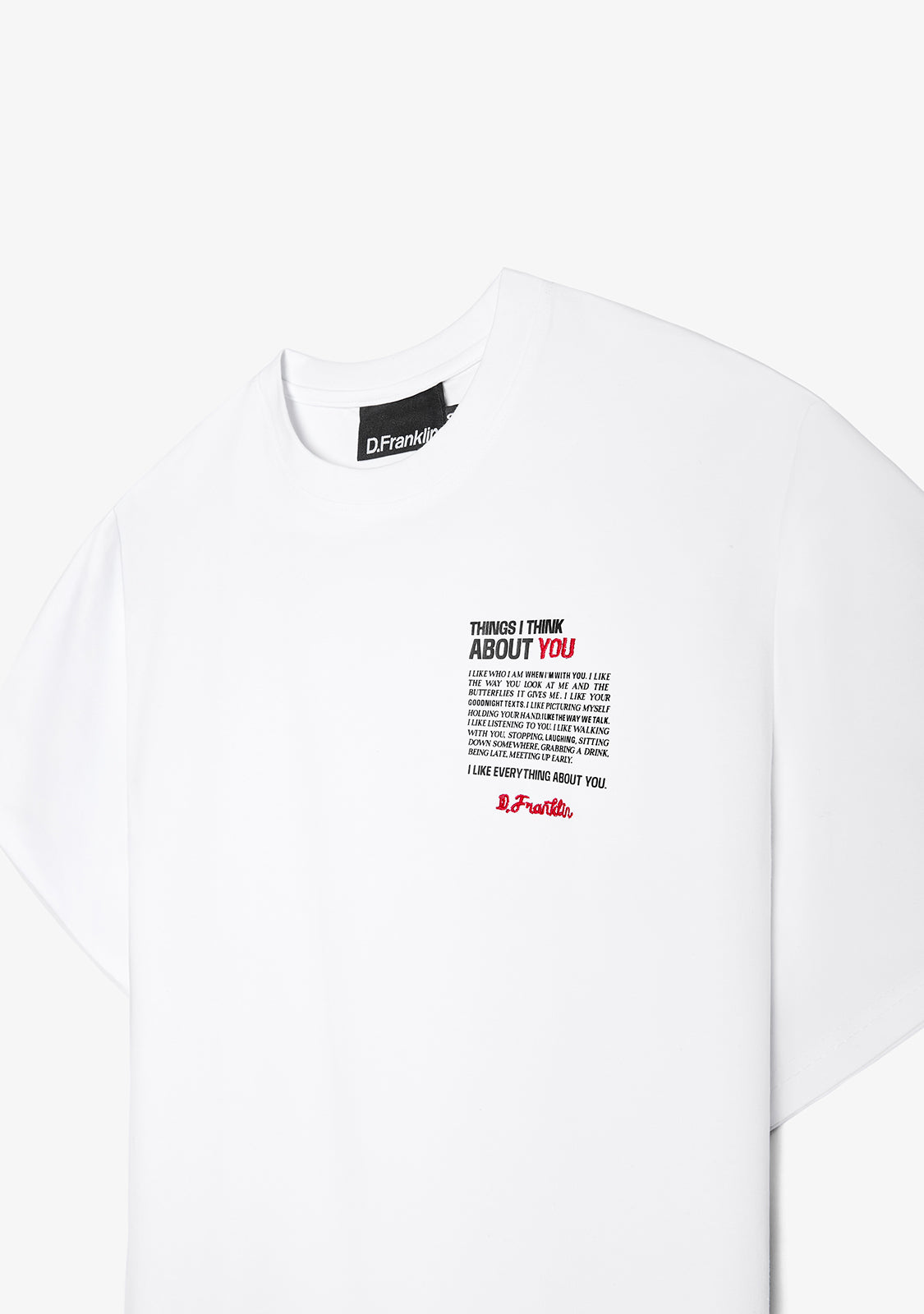 Love About You T-Shirt Weiß ist Teil unserer limitierten Valentinstagskollektion. Ein Stück, das mit Absicht verschenkt werden soll und das ausdrückt, was manchmal Worte allein nicht können.