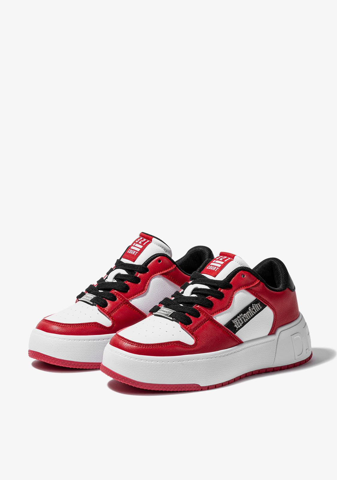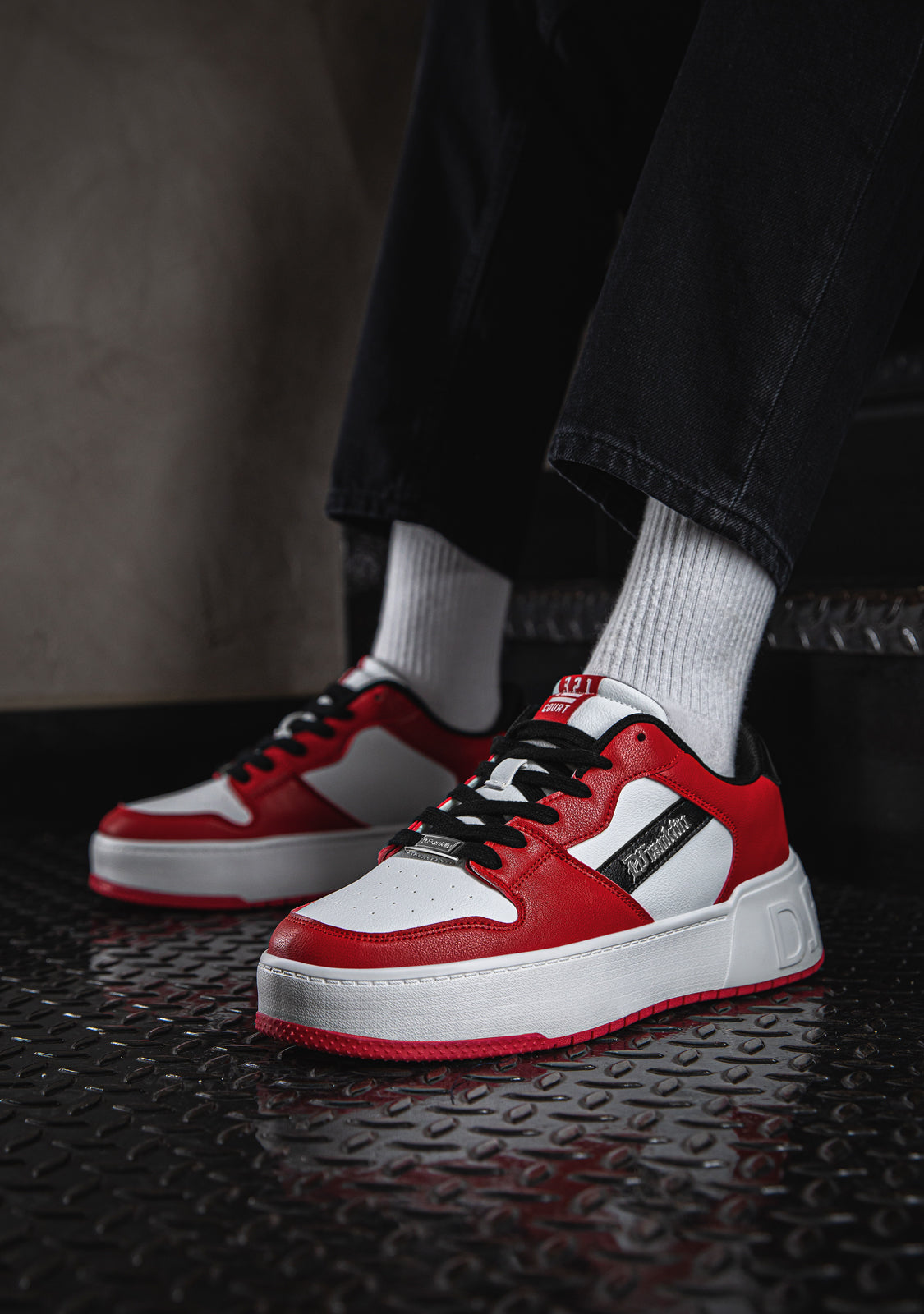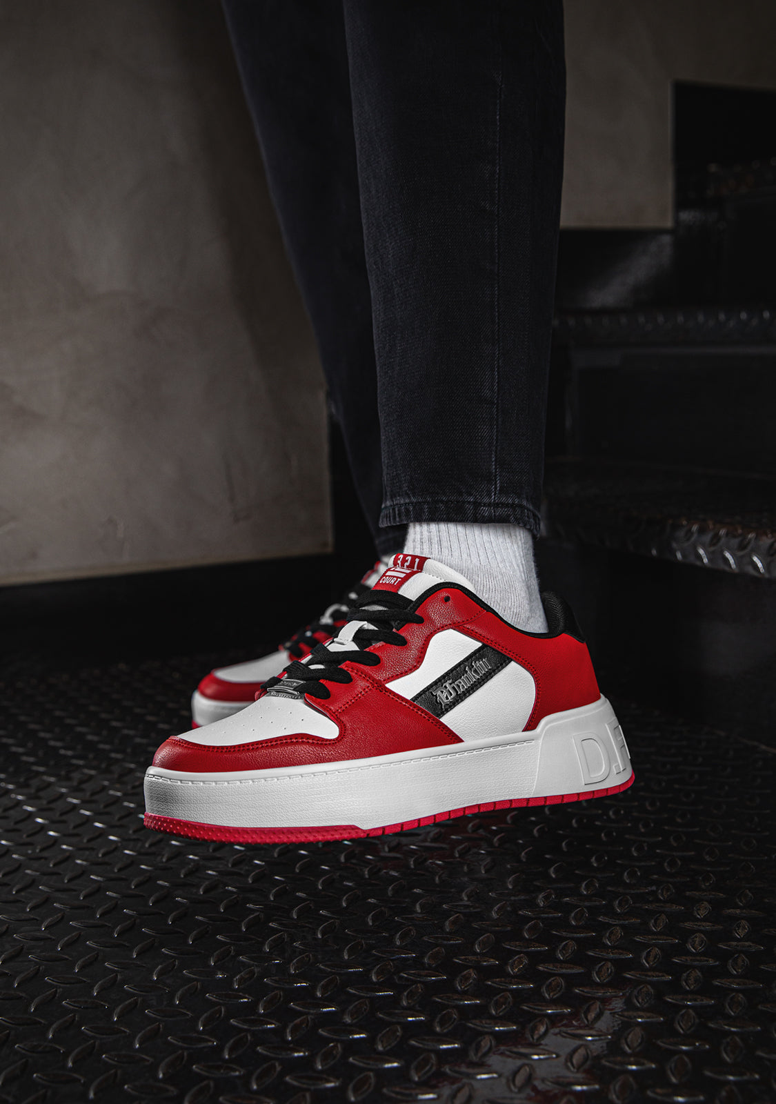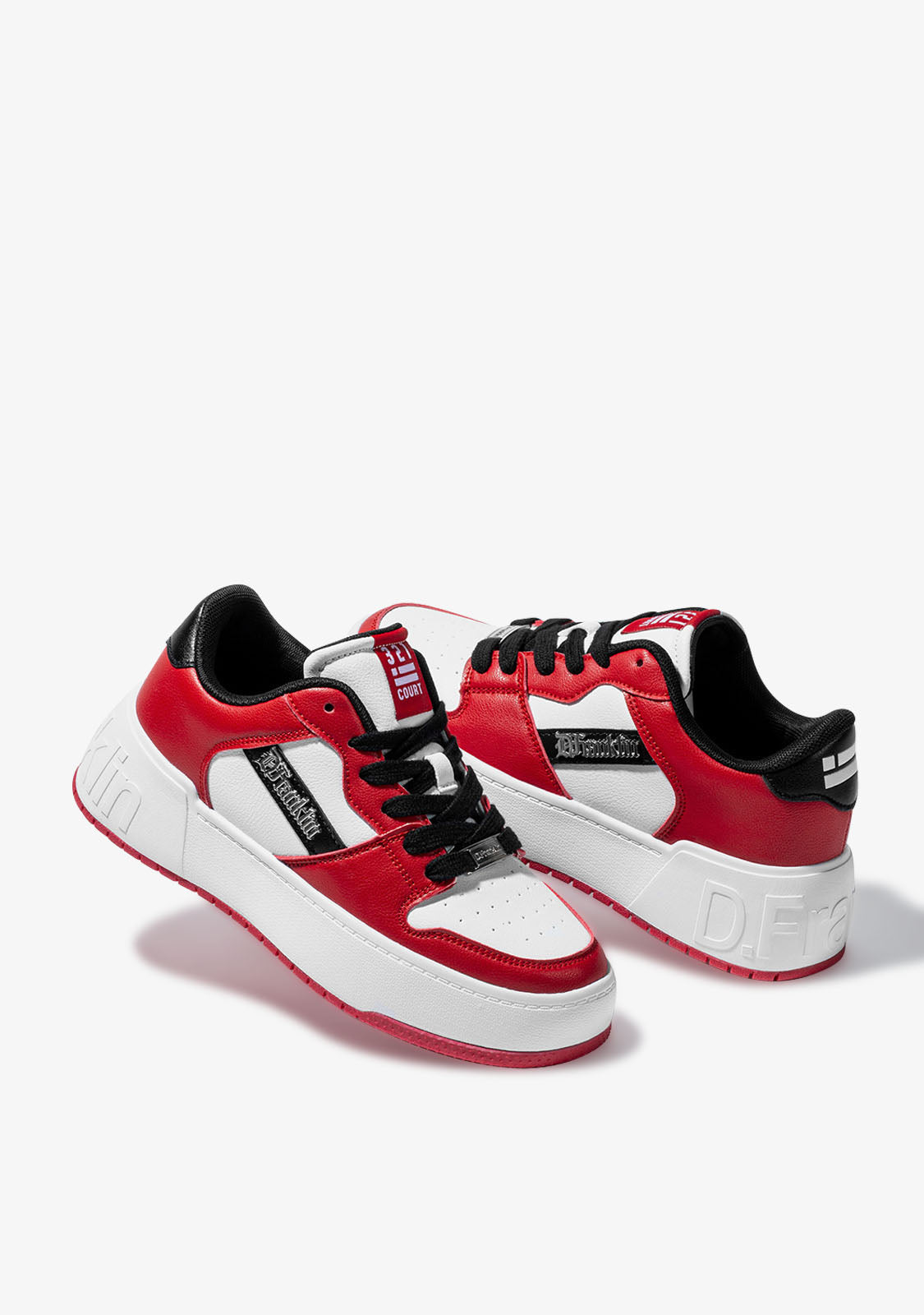 Präsentation D.Franklins 321 Court Collection. Ein neues sportlich inspiriertes Modell, das vom Spielfeld geschaffen wurde, um ein mutiges und vielseitiges Design zu bieten. Der Low Court Red zeichnet sich durch eine Neuinterpretation der klassischen Schichtenlinie aus, mit einer bahnbrechenden Farbkombination.