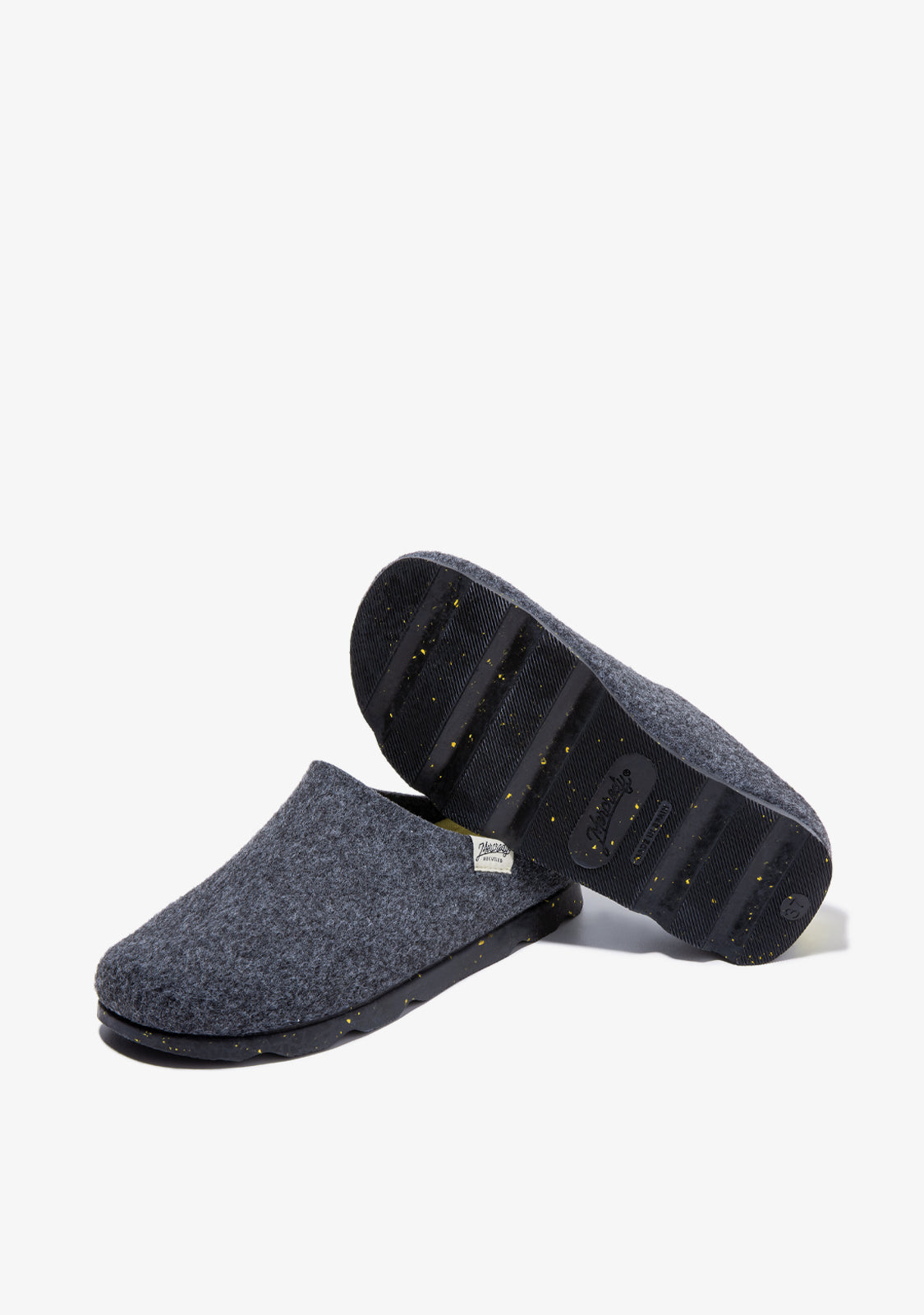 Schütze dich vor der Kälte mit diesem Design aus wiederverwendbaren Materialien. Das Obermaterial aus recyceltem PET-Filz hat einen schwarzen Farbton mit kleinen gelben Details. Darüber hinaus ist die kontrastierende Sohle aus zweifarbigen Naturkautschuk gefertigt, der aus recycelten Partikeln besteht.