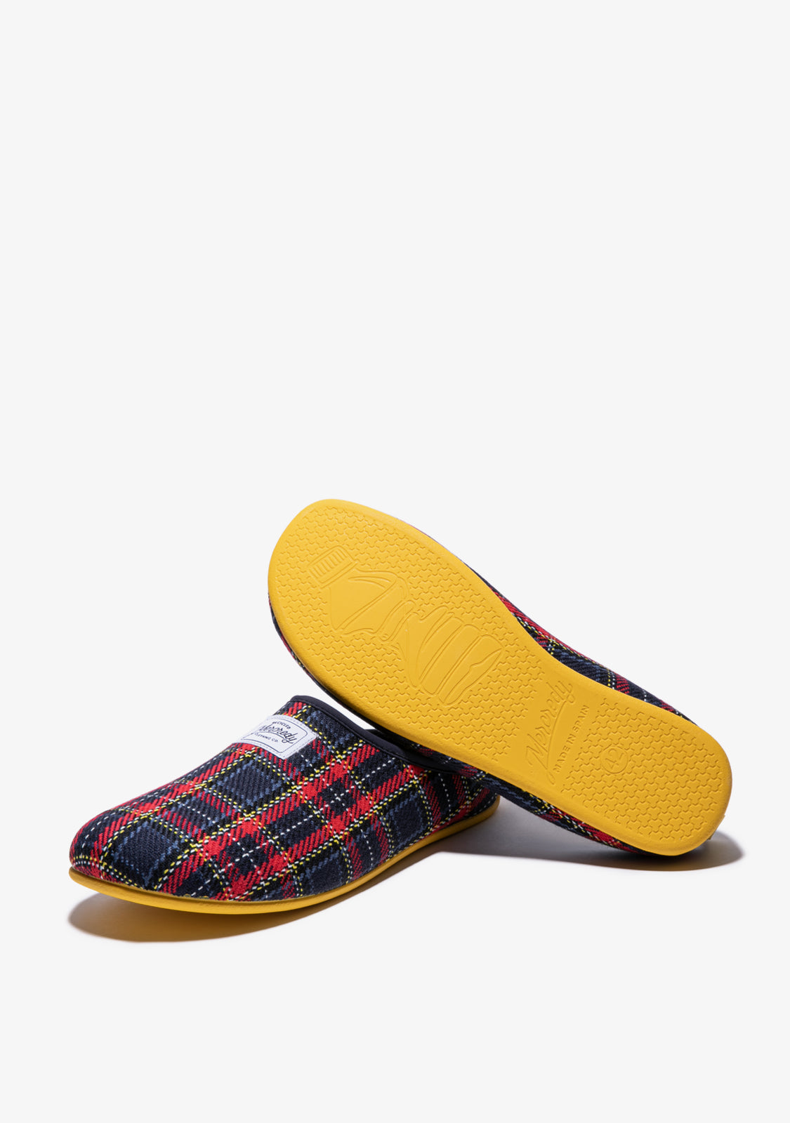 Nachhaltiger Komfort ist hier. Die neue Hausschuh-Kollektion von Mercredy kommt, um Schuhe für zu Hause aus recycelten Materialien zu schaffen. Sie bestehen aus einem bequemen und leichten Stoff, mit einer atmungsaktiven Textilfaser-Innensohle sowie einer rutschfesten Gummisohle. Die Mercredy Hausschuh Tartan Navy / Red sind mit einem Karo-Muster gestaltet.