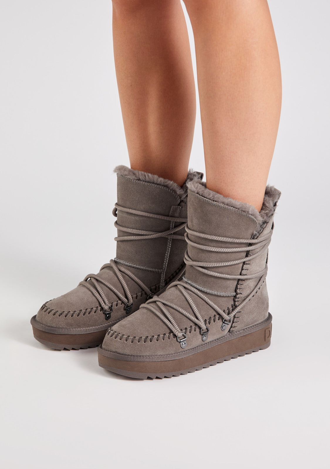 Asymmetrisches Schaftdesign in Grauton mit synthetischem Innenfutter für überlegene Wärme.