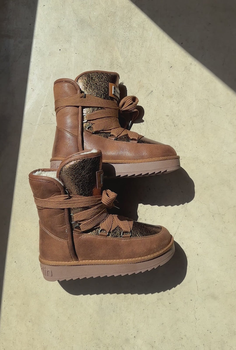 Australische Nordic Boots Kollektion. Die eisige Brise und der Glanz schneebedeckter Tage verschmolzen in einem Design mit glänzenden Oberflächen. Ein Stück, das die Après-Ski-Essenz mit unserem charakteristischen D.Franklin-Stempel atmet.