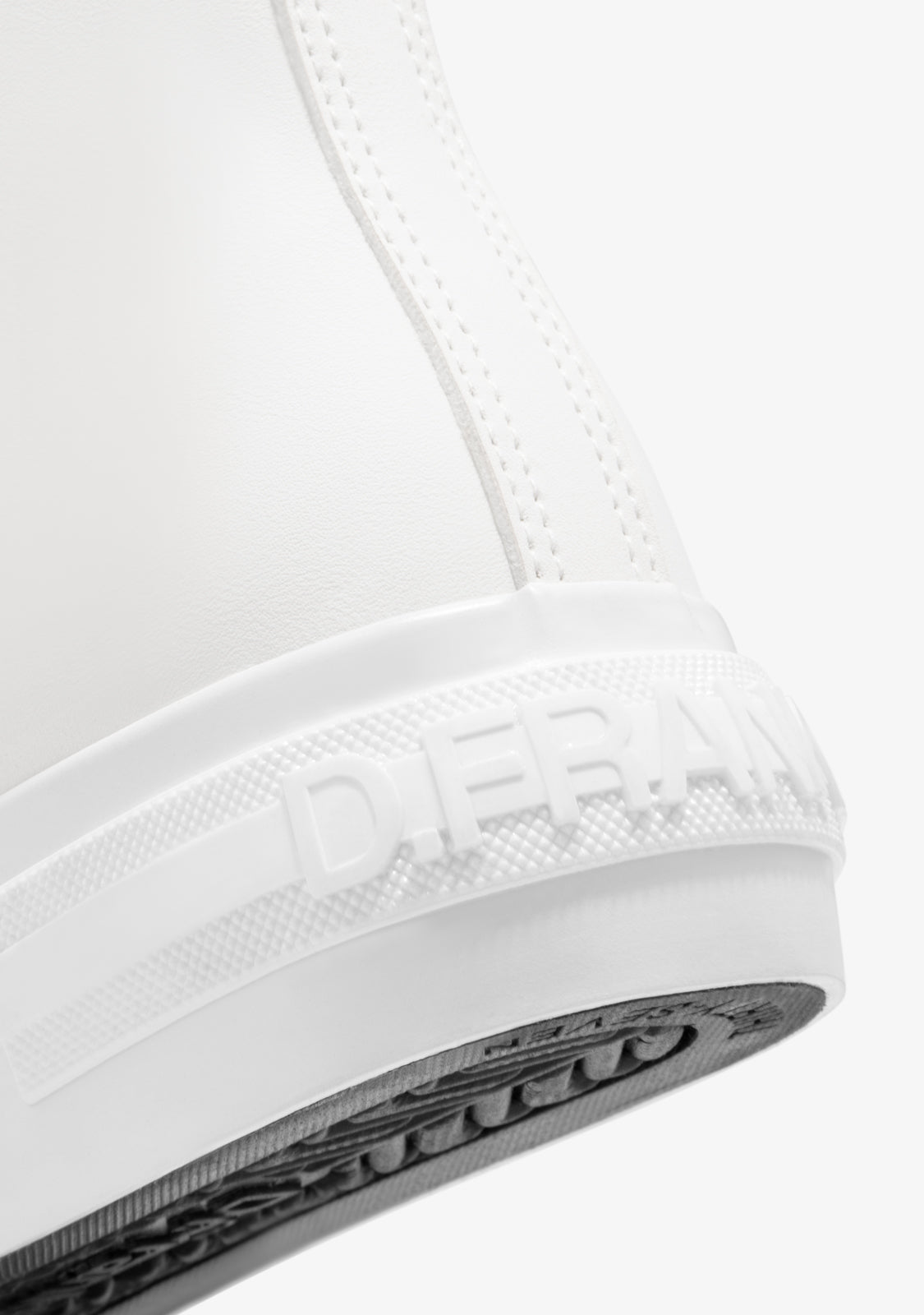 Einfarbige High-Cut-Sneaker von D.Franklin. Verschiedene Wege zu entdecken. Verschiedene Möglichkeiten, es zu tun. Eine Erinnerung daran, dass Sie mit entspannten, einfachen Abschlüssen im Trend bleiben können.
