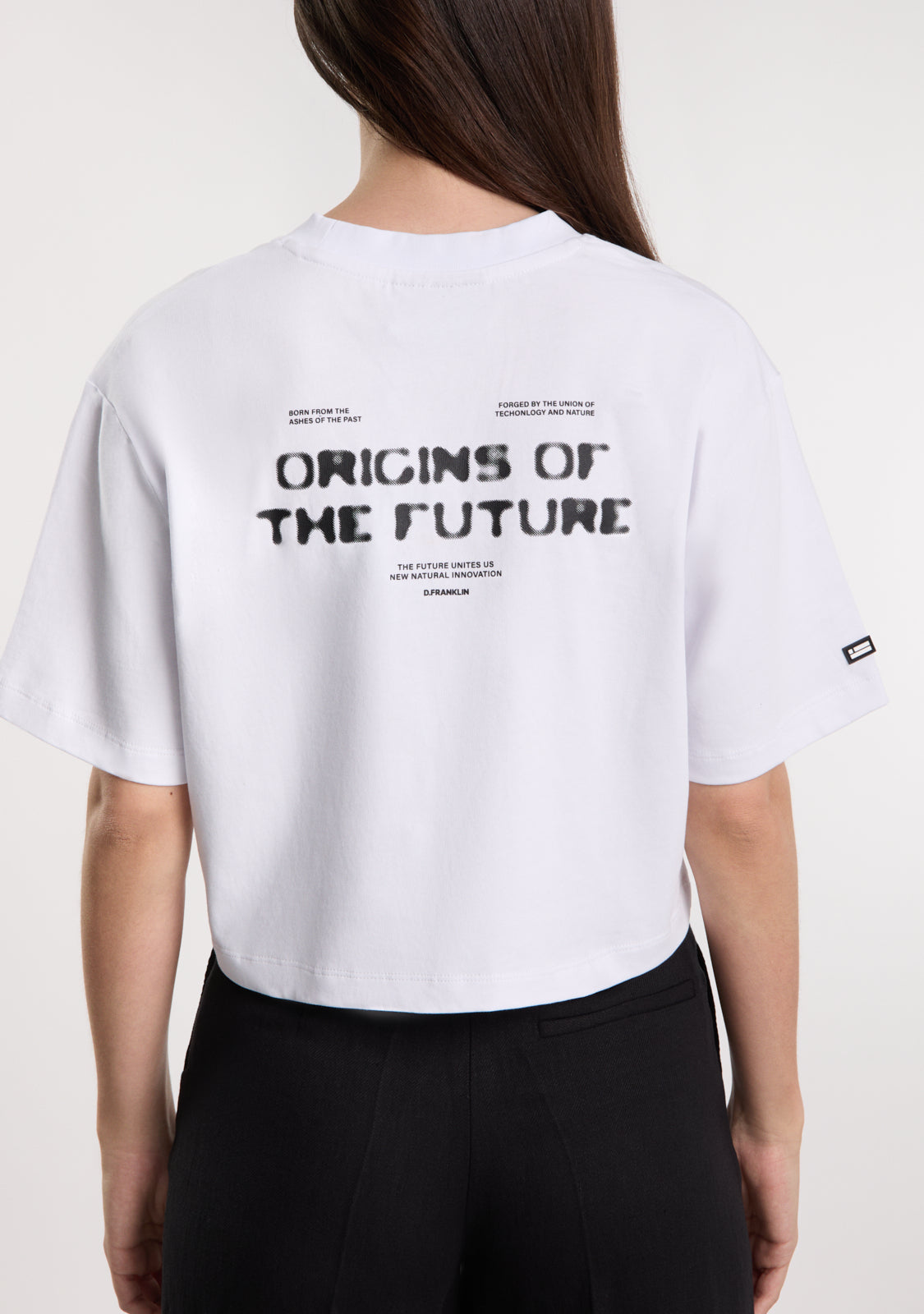 Das Origins Cropped T-Shirt Weiß / Schwarz von D.Franklin ist das perfekte T-Shirt für einen lässigen, aber stilvollen Look. Hergestellt aus 100% 230 GMS Baumwolle, bietet es ein weiches und angenehmes Tragegefühl den ganzen Tag über. Der lockere Schnitt und das cropped Design verleihen einen modernen und frischen Touch.