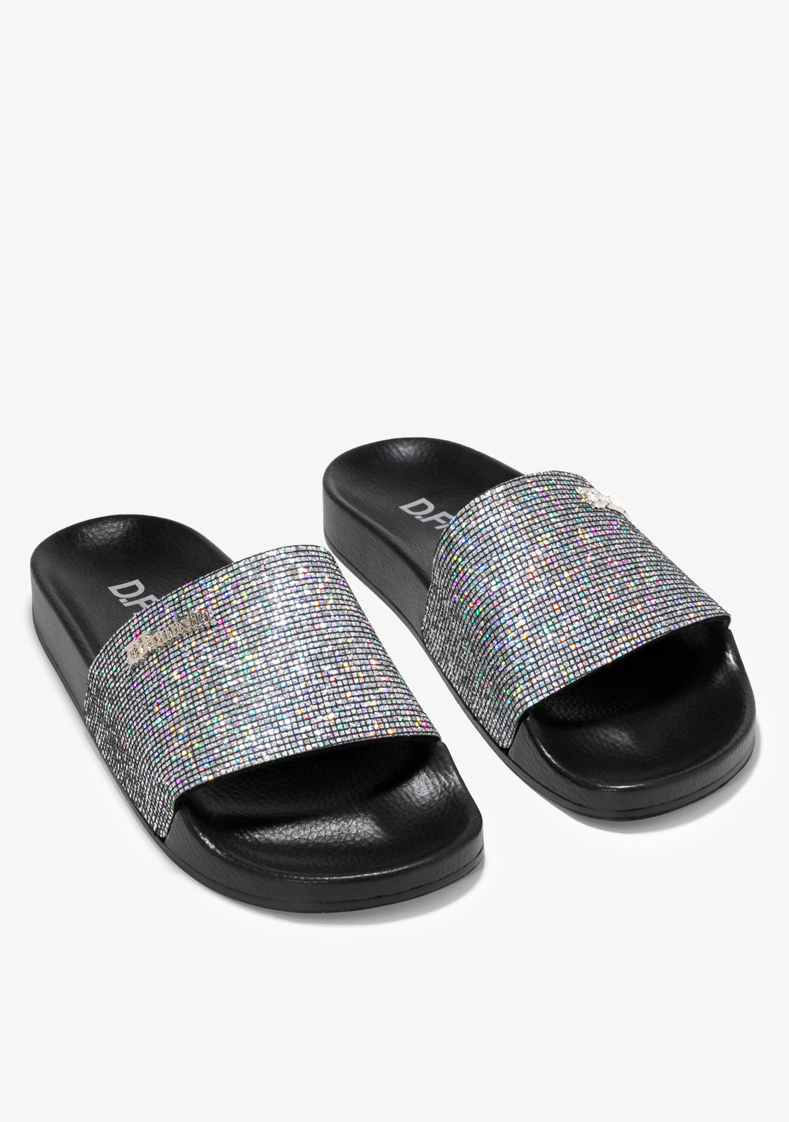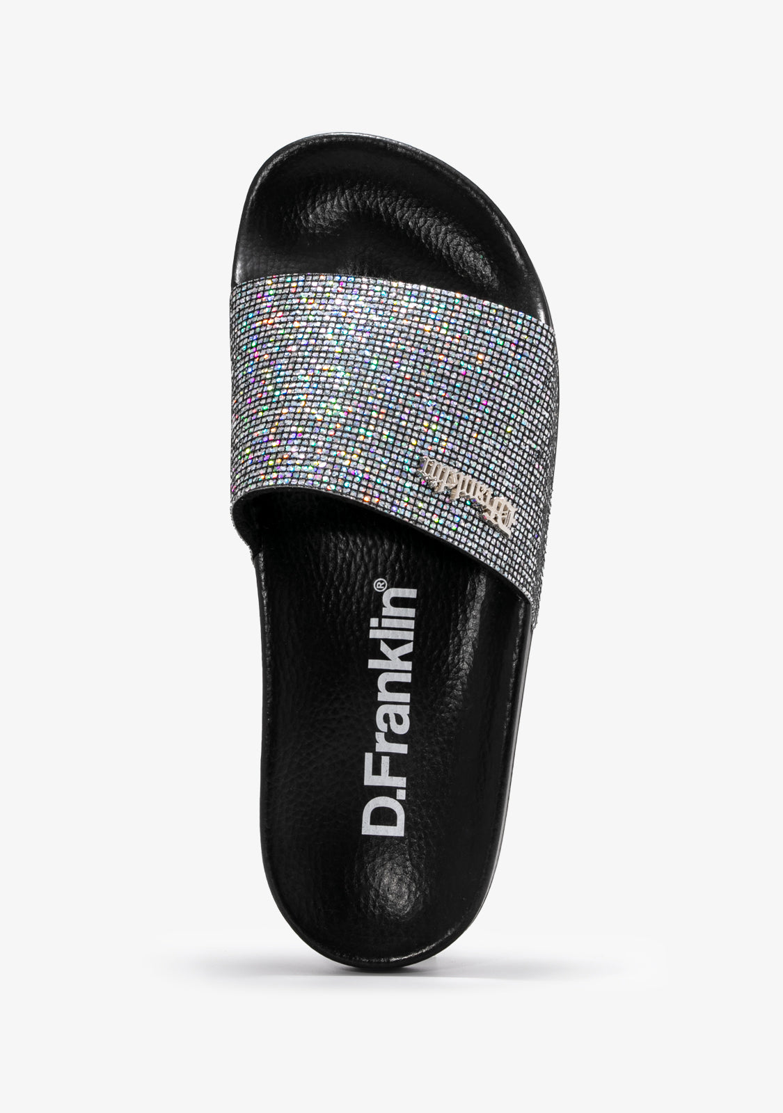 Die D.Franklin Pala Slide Patent Sandalen verfügen über einen breiten synthetischen Riemen mit Glitzerprint für einen sicheren Sitz. Sie haben auch unser D.Franklin Emblem auf dem Obermaterial. Das Fußbett-Design ist so geformt, dass es perfekt der Fußform entspricht.