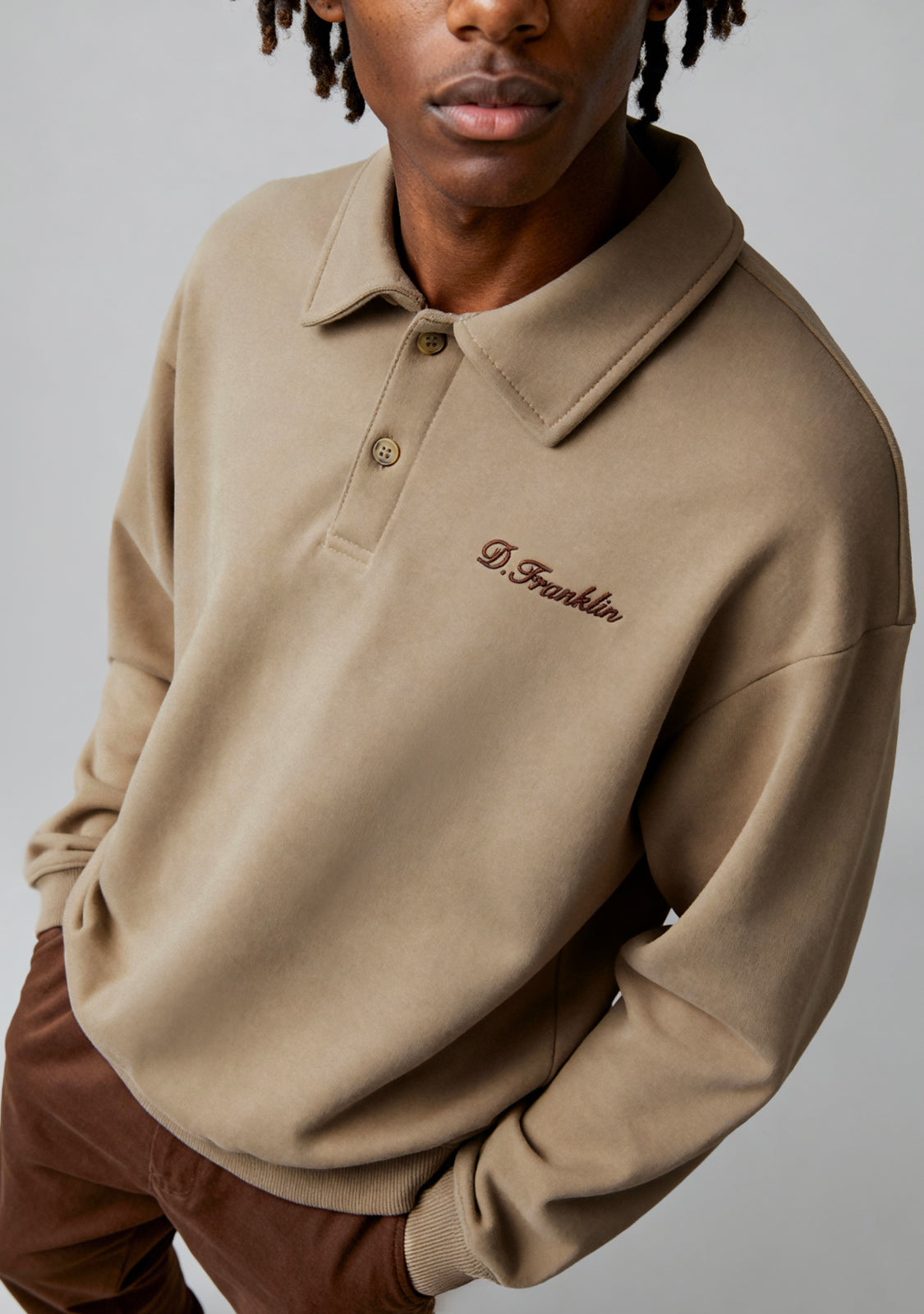 Polo Sweatshirt Sand ist ein Unisex-Sweatshirt mit klarem Polo-Design. Ein vielseitiges Basic, das deinem Alltagslook Wärme verleiht.