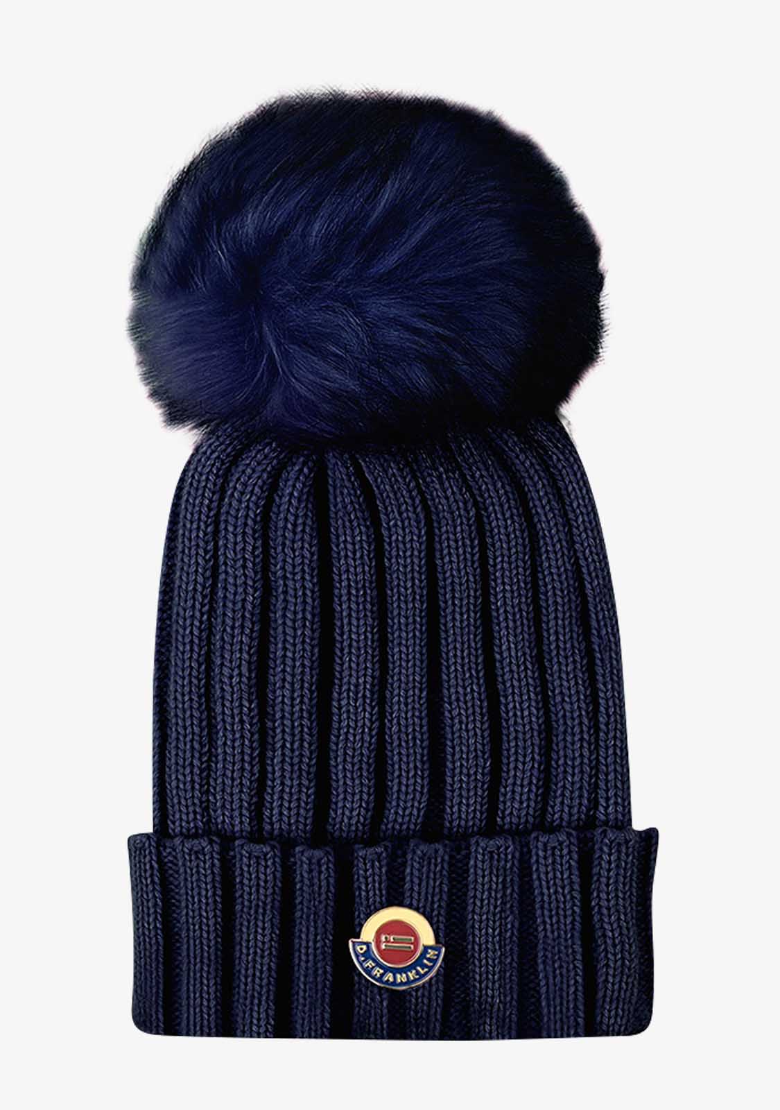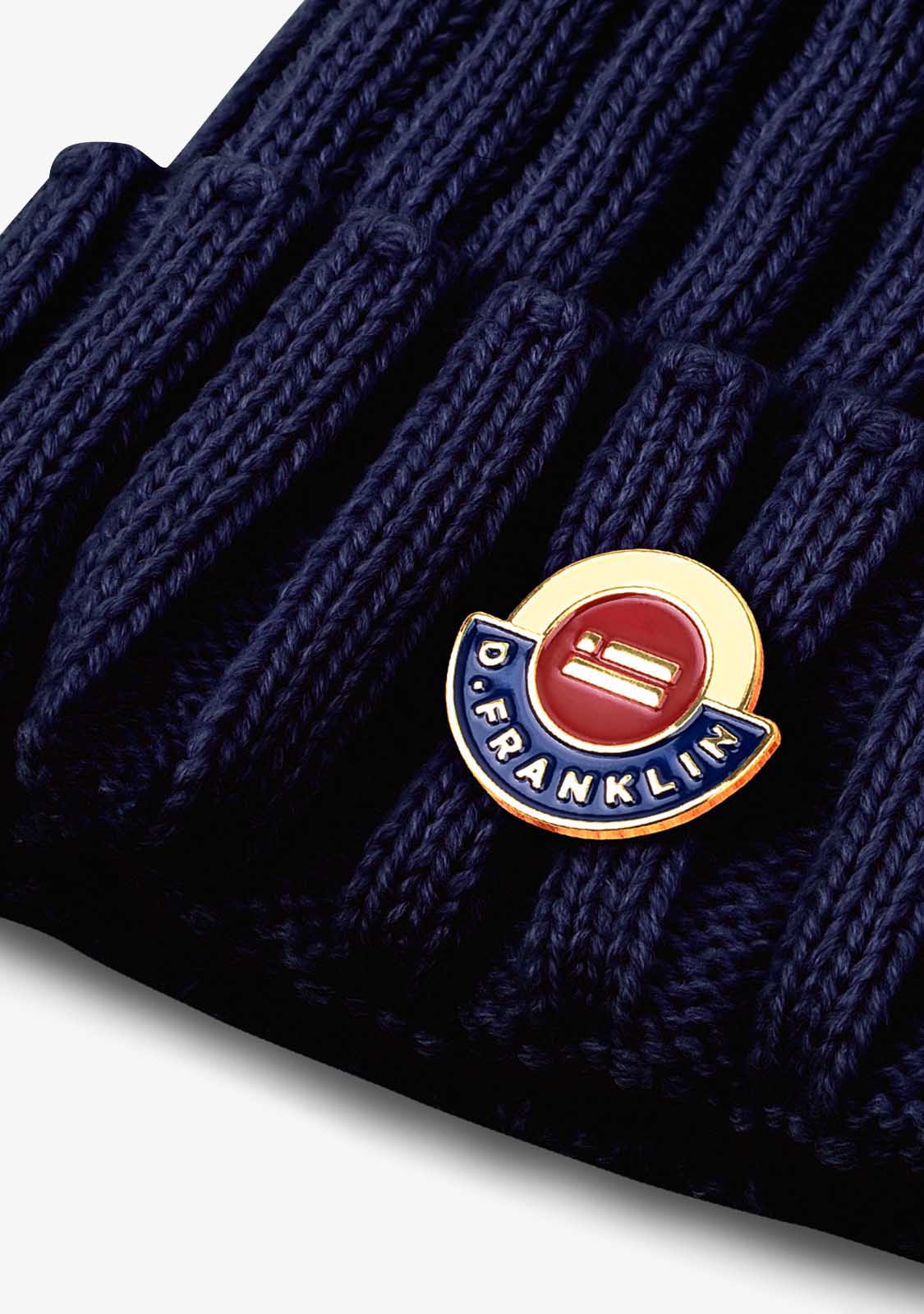 Die neuen Pom Beanies von D.Franklin® sind inspiriert von den beliebten nordischen Mützen. Die Pom Beanie Navy kombiniert handgenähte Texturen in einer doppelt gefalteten Mütze in Navy-Farbe mit einem elastischen Strick und einem Logo-Pin-Detail auf der Vorderseite.