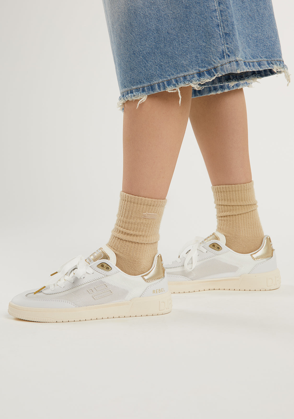 Die Rebel Mesh Flag White / Gold Sneakers von D.Franklin sind das perfekte Freizeitfootwear für diejenigen, die Stil und Komfort in ihrem Alltag suchen. Dieses Modell mit einem eleganten Wildleder-Finish kombiniert Vielseitigkeit und modernes Design in einem beigen Farbton, der sich leicht an jedes Outfit anpasst.