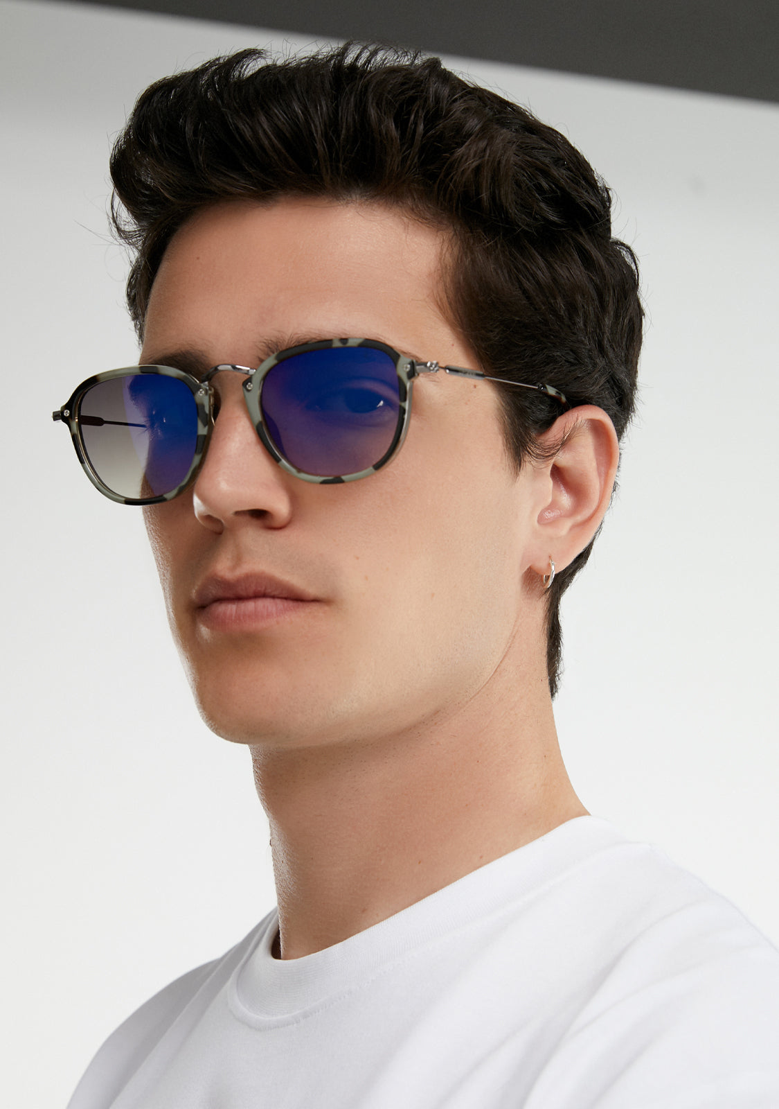 Rauchige Polycarbonat verspiegelte REVO Gläser verfügen über eine metallische Silhouette mit einem quadratischen Rahmen. Es zeigt die charakteristischen Details unserer Marke: das Logo, das auf beiden Metallbügeln eingraviert ist, und unser Emblem auf dem rechten Glas. Mit einer Glasbreite von 51 mm und einem Frontrahmen von 147 mm verbessern diese Brillen jedes Gesicht. Die seitlichen Bügel bestehen aus rostfreiem Stahl und haben eine Länge von 145 mm.